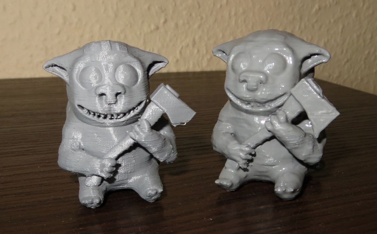 Попробовал тут ацетон на АБС, в итоге пришёл к выводу, что оптимально мокнуть полностью и тут же вынуть, а после пройтись тряпочкой с ацетоном. На ощупь как фотополимер становится, приятно в руках крутить. В принципе и тряпочки хватает, но первое окунание сокращает время вазюканья тряпочкой по сложным мелким деталям.