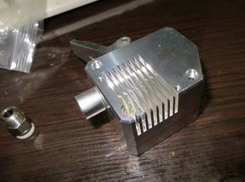 Мне пришёл алюминиевый экструдер с металлическими шестернями. Радиатор у него встроенный. Я думал корпус будет магниевый, более лёгкий, но корпус достаточно увесистый - весит раза в два тяжелее пластикового.