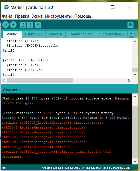 Подключил электронику, пытаюсь залить прошивку - не коннектится... Pronterface тоже не видит дуню. Комп устройство видит, пишет, что работает нормально. На дуне светодиод светится, но не моргает в процессе попыток заливки прошивки... Два шнура попробовал. Где собака порылась?