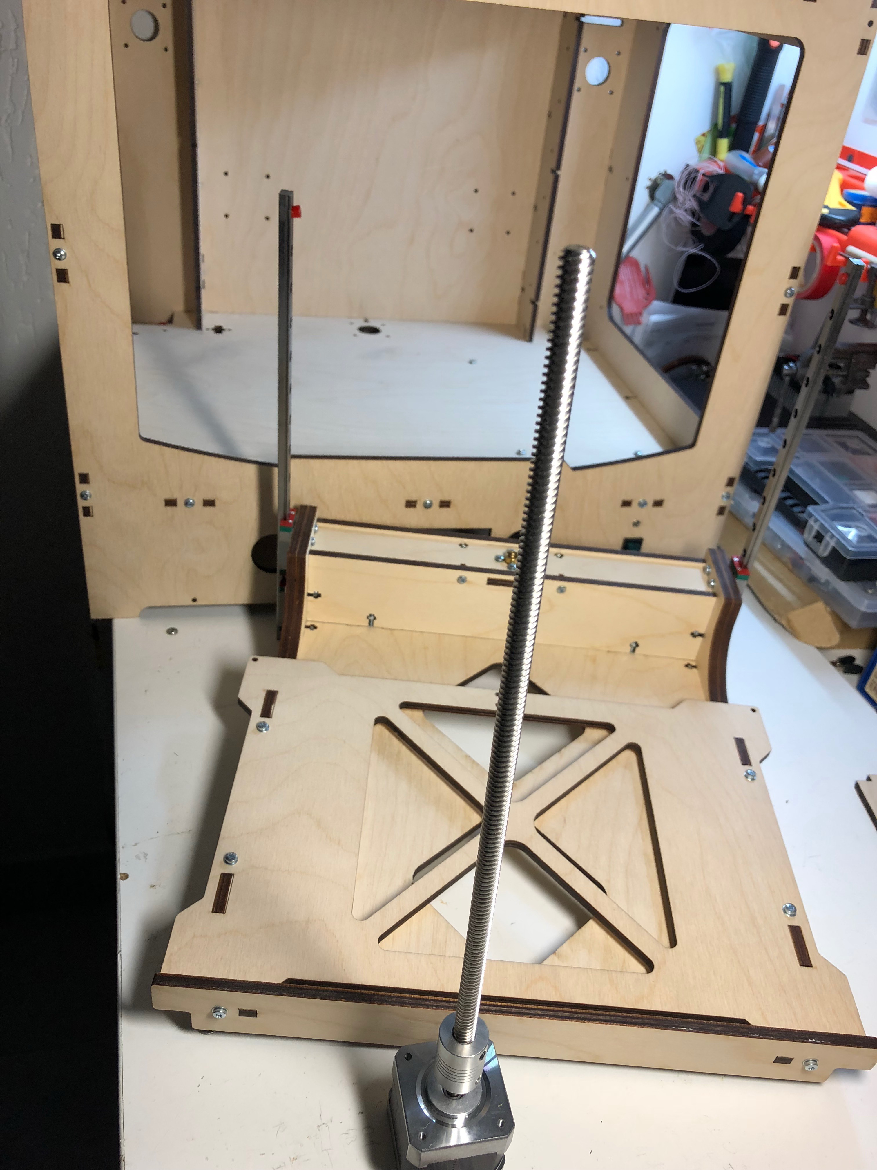 Или,сначала, прикрутить мотор с муфтой к полу?Потом винт к нему? но как тогда на него стол накрутить?