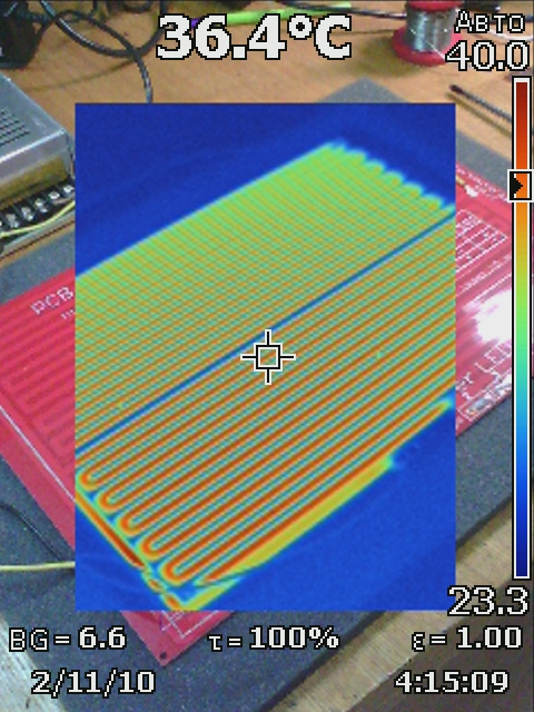 Так там особенно то и нечем делиться. Вся проблема сводится к тому, что секции конкретно моего стола имеют разное сопротивление. Если присмотреться, то можно заметить, что верхняя на фото имеет 13 горизонтальных дорожек в меандре, а нижняя - 11,5. При этом, к верхней секции добавляются еще и широкие проводники.