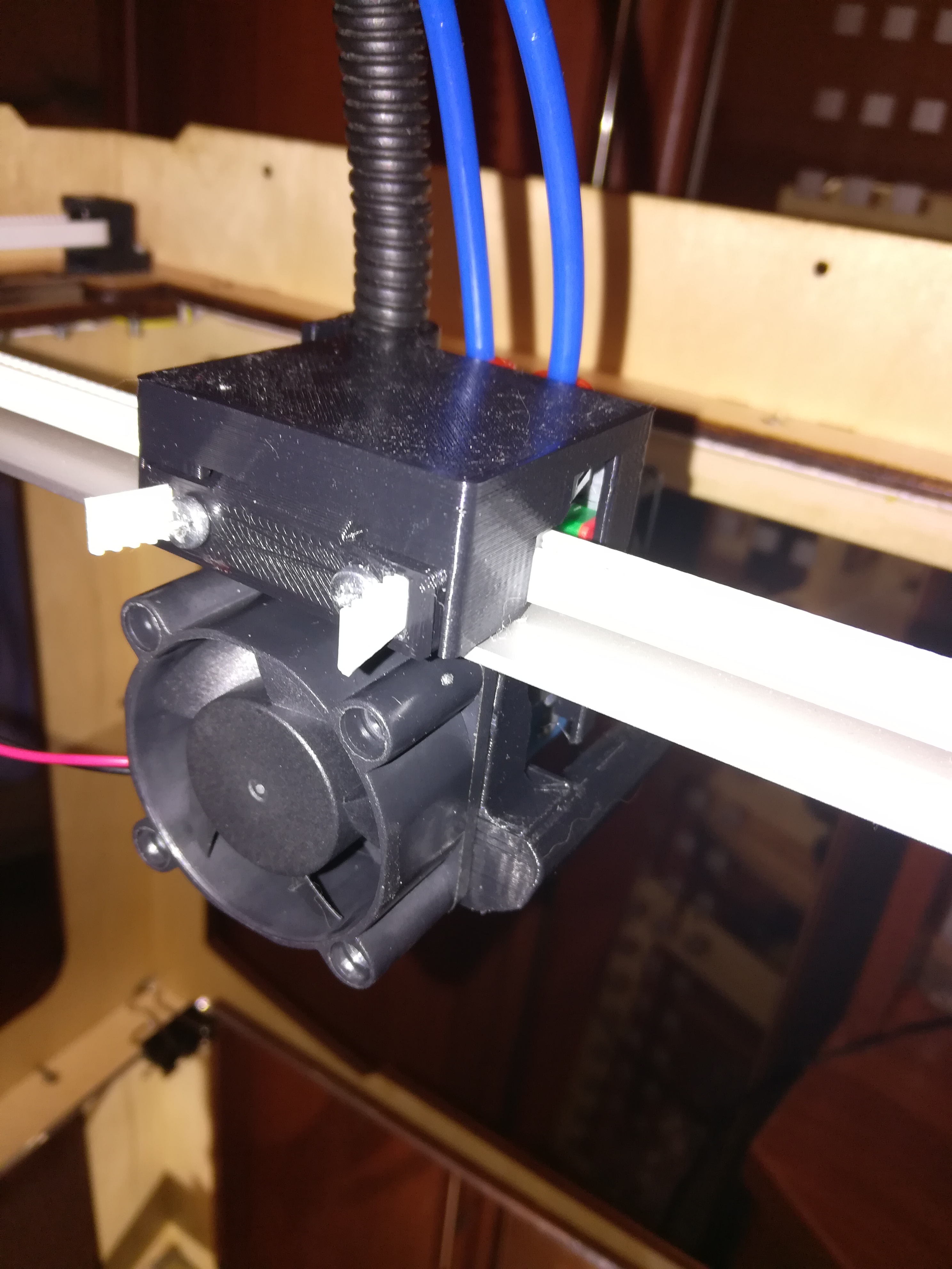 Вот вид сзади у моего обдува, дует не хуже турбинки. Осталось подумать как верхнюю крышку закрепить в которую кабель-канал входит! Сидит она плотно, но хоть одним винтом надо закрепить. :D