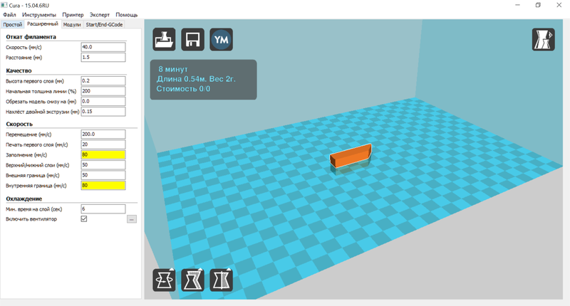 Все, настроил тракт подачи сырья. Колбаска стала значительно толще. Прошивку трогать не пришлось. Был косячек при сборке хотэнда. Боуден не доходил до сопла.Alex Post писал(а): ↑24 июл 2018, 08:35Да. И это важный момент настройки. Прогоняешь через экструдер 10-20 см пластика по программе (или через менюшку) и засекаешь, сколько реально прошло. Потом путем нехитрых вычислений получаешь новое значение шагов на мм для экструдера. Занимает минут 20 времени от силы.