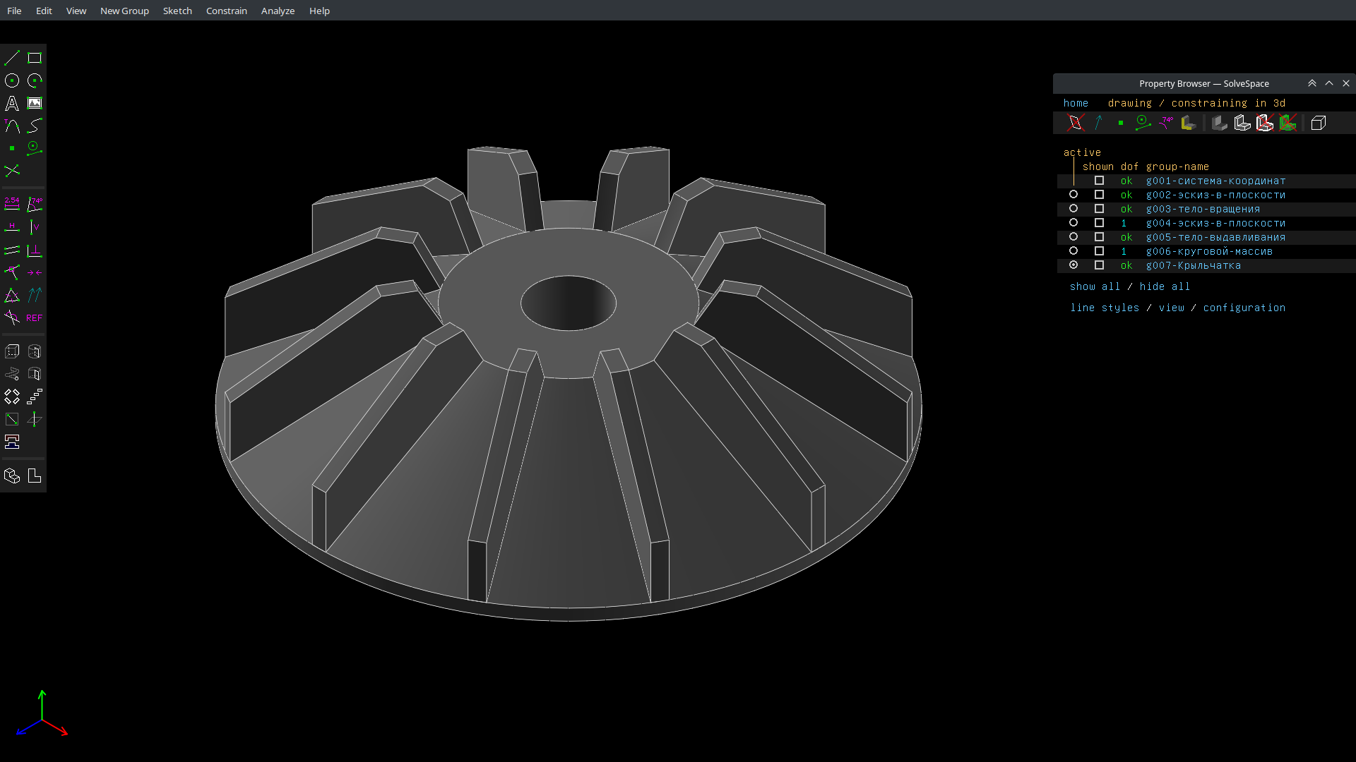 SolveSpace очень стабильный, шустрый, простой и наглядный редактор.