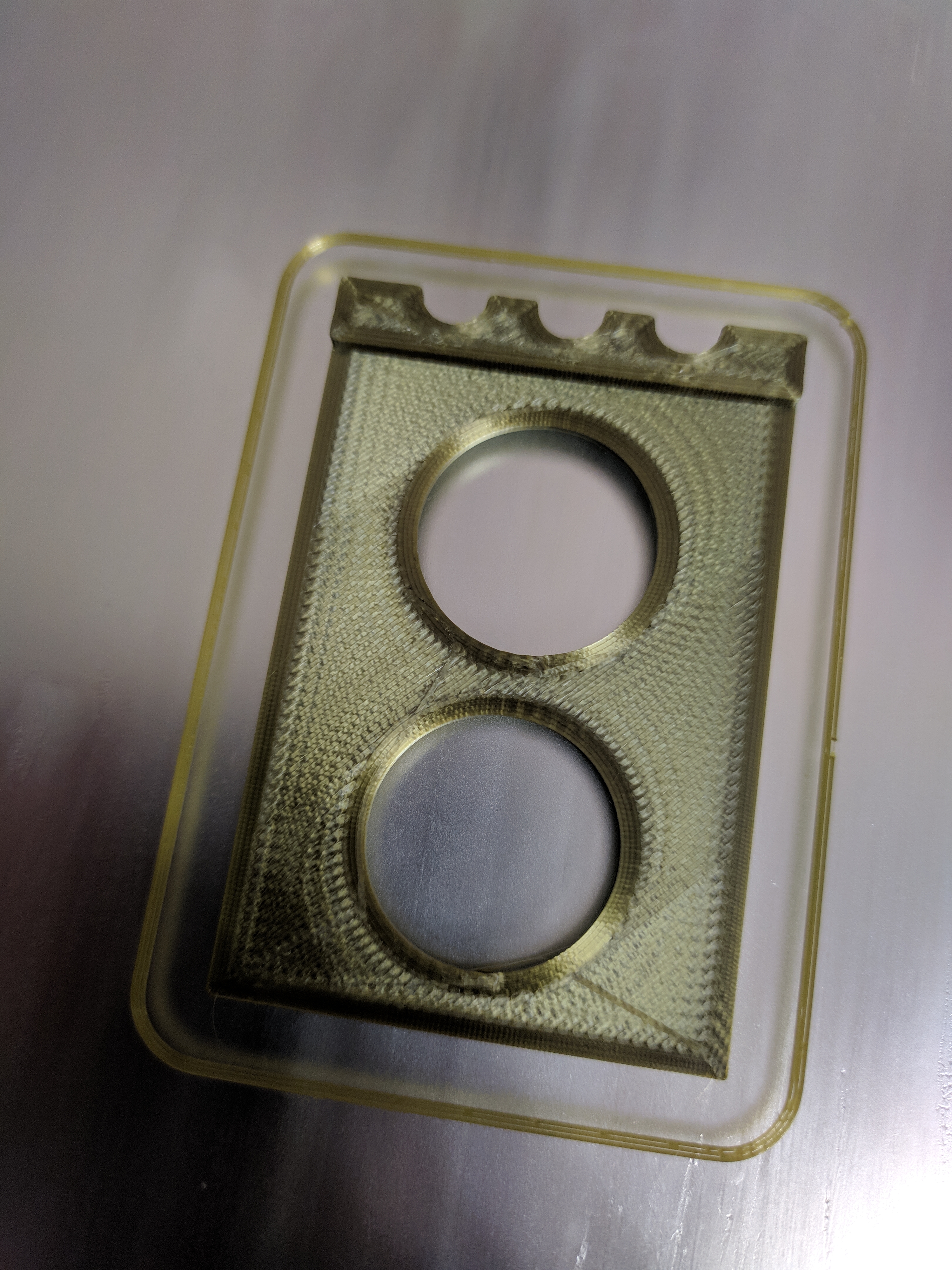 Распечатал похожую деталь, но пластик шёлк, потому линии плохо видны, да и поспешил и на чистое стекло клей халтурно нанёс, так что деталь по краям загнулась вверх :D