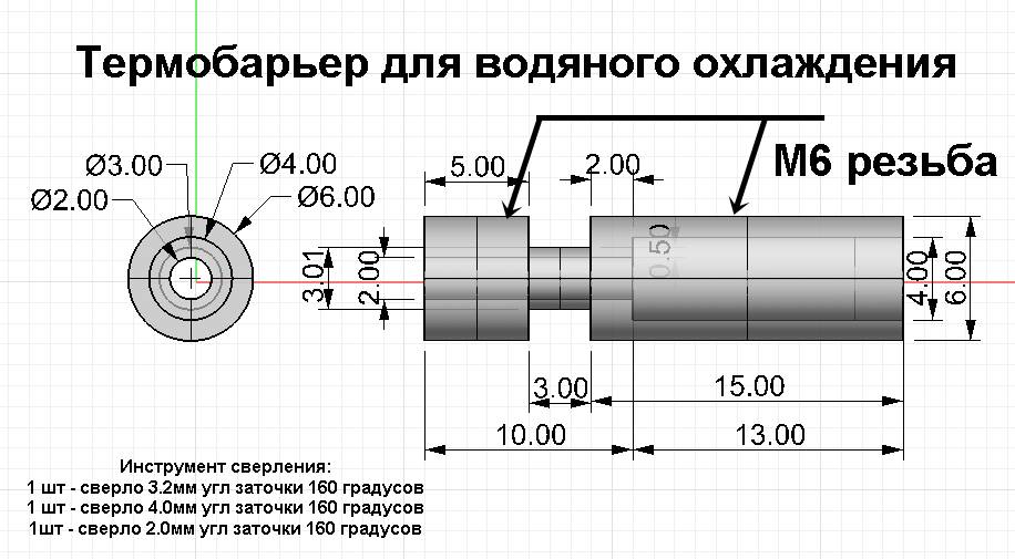 Пошаговая методика быстрого изготовления термобарьера для водяного охлаждения без применения принудительного охлаждения детали сверления из нержавейки: