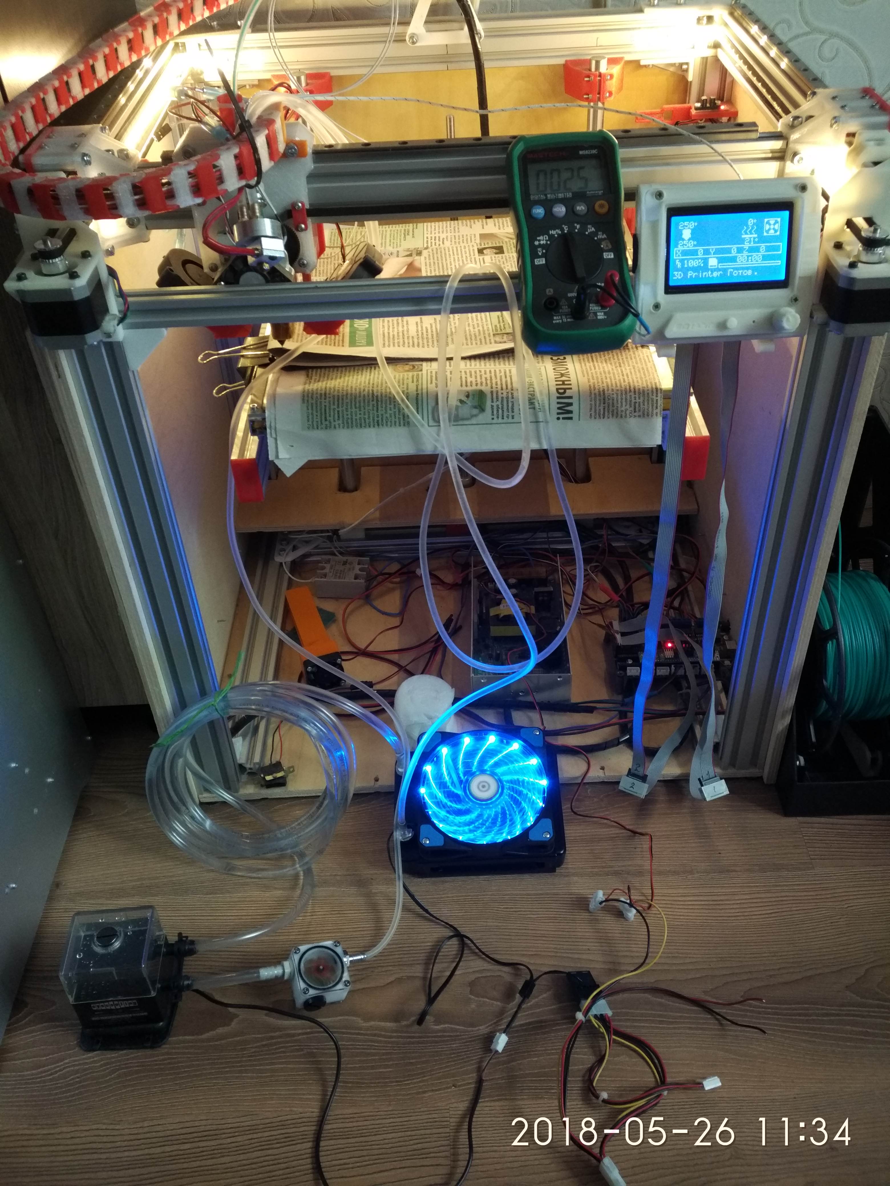 1 час нагрева - термобарьер 26 град., вода 25,7 град 2 часа нагрева - термобарьер 27 град., вода 25,9 град На этом тестирование остановил, убедившись в герметичности системы и е работоспособности. Вторым этапом тестирования будет печатать с использованием сво. Поскольку у меня стоит экструдер титан-аэро и не хочется разбирать всю голову, то я просто временно вкручу термобарьер прямо в радиатор, сняв замок. Если тесты будут успешными аэро можно будет снять и оставить просто титан.