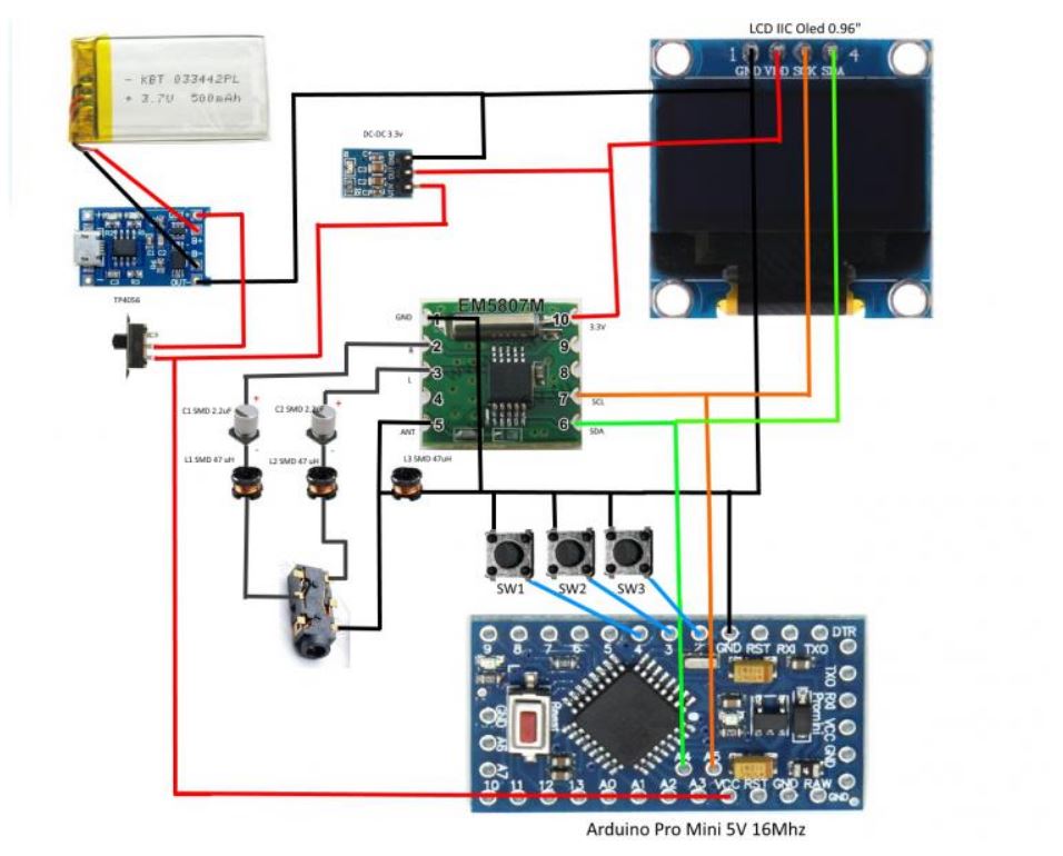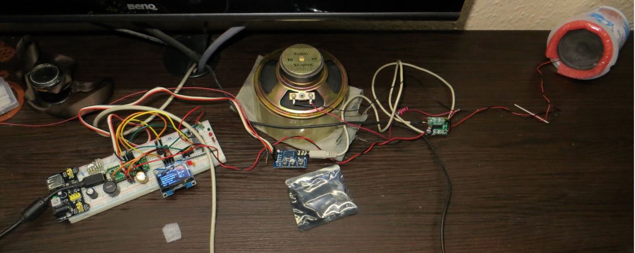 сперва собрал на одной макетной плате ..... но ловило плохо. Потом разнёс платки ардуино, плату тюнера и усилителя подальше друг от друга и поставил дросселя на питание и дополнительные конденсаторы и звук стал более менее (пока основную систему не включишь) - слушать как то можно .... но надо будет ВЧ шум будет убирать.... На один канал поставил динамик от магнитолы , а на другой канал маленький( типа как вч) динамик от диктофона ..... Так баловство очередное. Дросселя по питанию и дополнительные конденсаторы рулят.