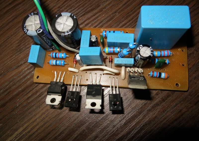 Запустил - с разным производителем выходных транзисторов мне не понравилось...Пошёл купил транзисторы одного производителя - и звук стал другим. Китайский тестер транзисторы TIP41c/TIP42C - у одного производителя определяет как обычные NPN/PNP, а у другого производителя как IGBT.... И звук разный. Те, которые определяются как IGBT - мне по звуку понравились больше. У этих транзисторов на корпусе - на пластике, с боков насечки-выемки сделаны. Хотя тестер то дешёвый, но обычно правильно транзисторы до этого мерял.
