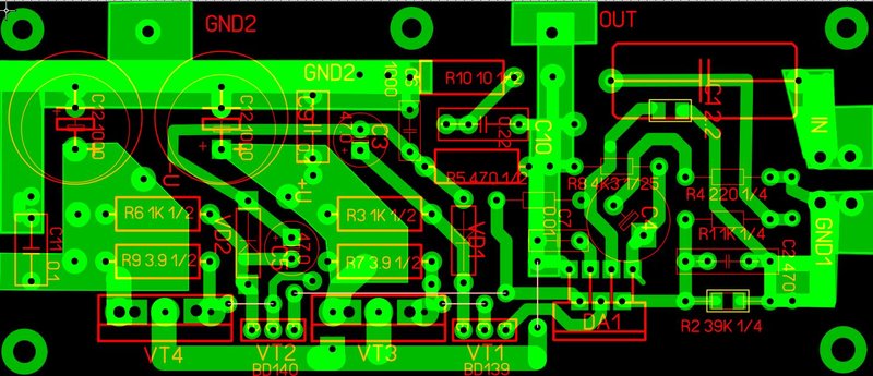 Ну что сказать схема играет сходу. Спаял чтобы сравнить со своими усилителями на TDA2050 и на TDA7265(по утверждениям некоторых это просто две TDA2050 в одном корпусе +MUTE). На TDA2050 - там в блоке питания 120 000 мкф конденсаторов Мундорф М-литик + 100 мкф -пленка МКР Мундорф. А в усилителе TDA7265 - там 60 000 мкф на конденсаторах ROE+ 40 мкф немецкой плёнки МКР.