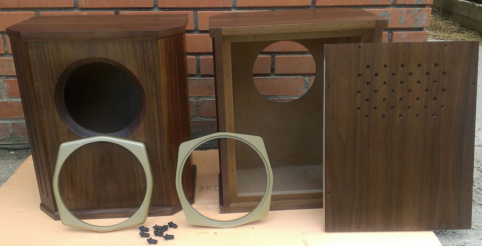 В этих корпусах динамики играли несколько лет, пока не переехал в новую квартиру и эти колонки, ну никак, не вписывались в новую обстановку. Да, и корпуса не давали раскрыться динамикам во всю свою красу. Поэтому заказал корпуса с отделкой американским орехом.