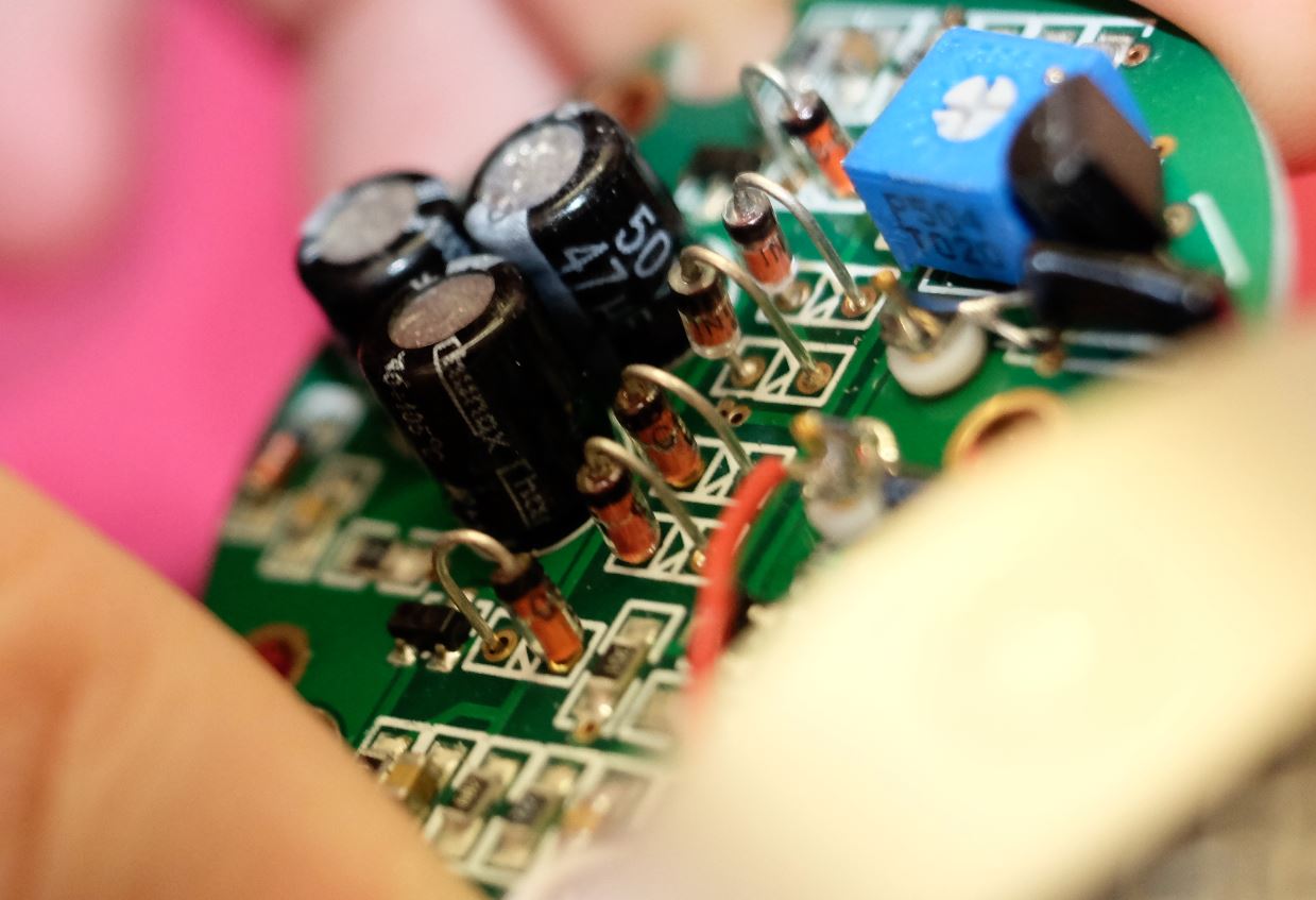 Плата явно пром пайки, а потом достаточно коряво допаяно несколько деталей и проводков. Часть деталей не пропаяны - надо допаять. То, что допаивали в ручную - не отмыли от флюса. В микрофонах это критично.