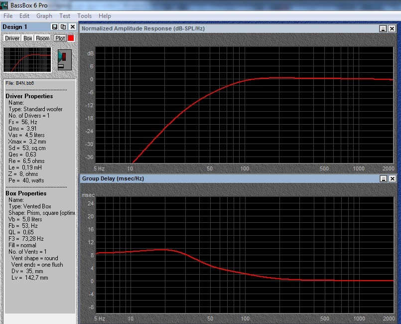 Фильтры колонок моделировались в Вохsim, акустическое оформление мидбаса- в BassBox 6 Pro