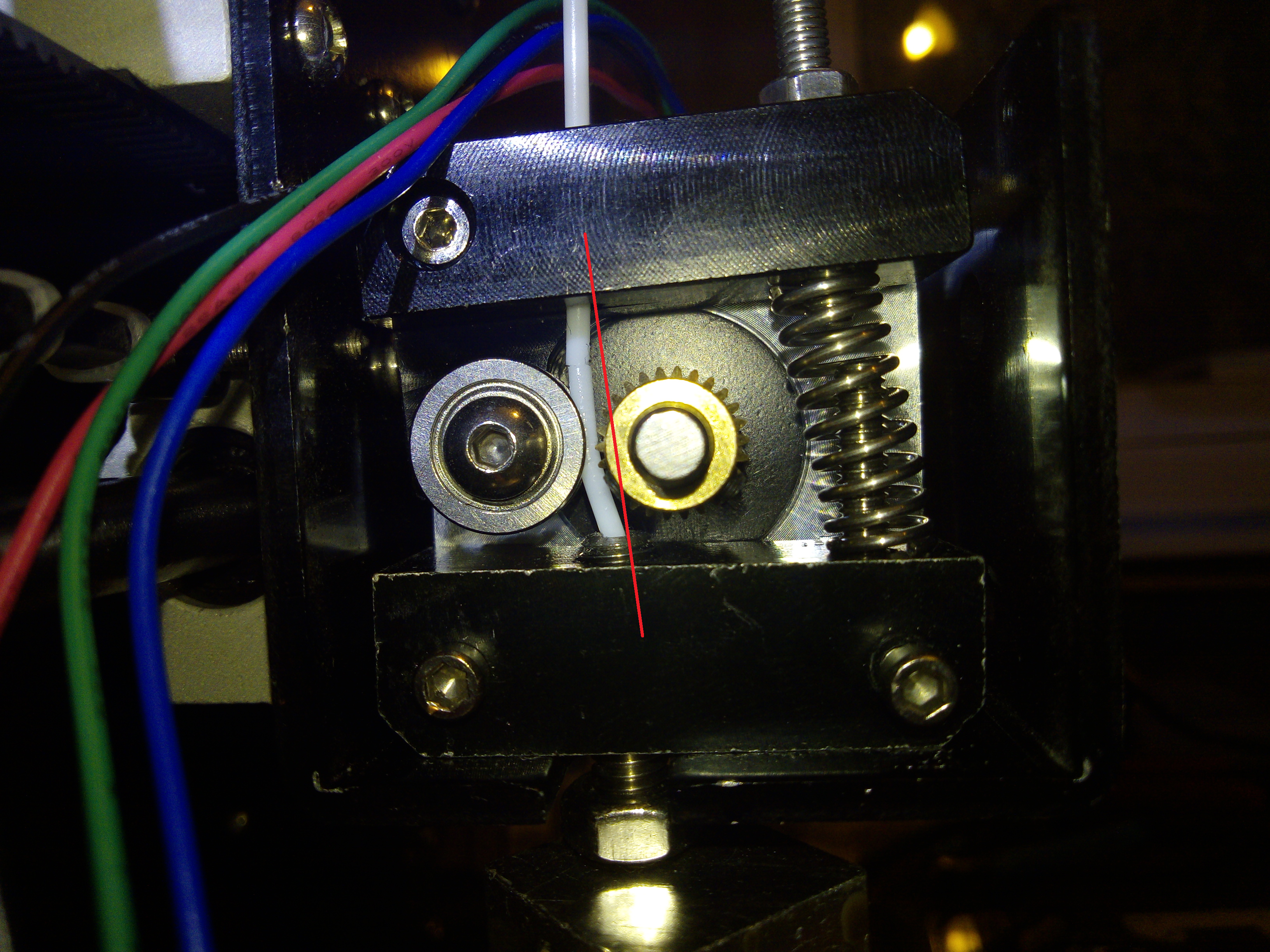 разобрал экструдер и увидел что шестерня подачи филамента сильно заходит за ось "входа /выхода" (фото) Соответственно пруток идёт на излом и мотору его трудно подавать.(А может я всё надумал....)