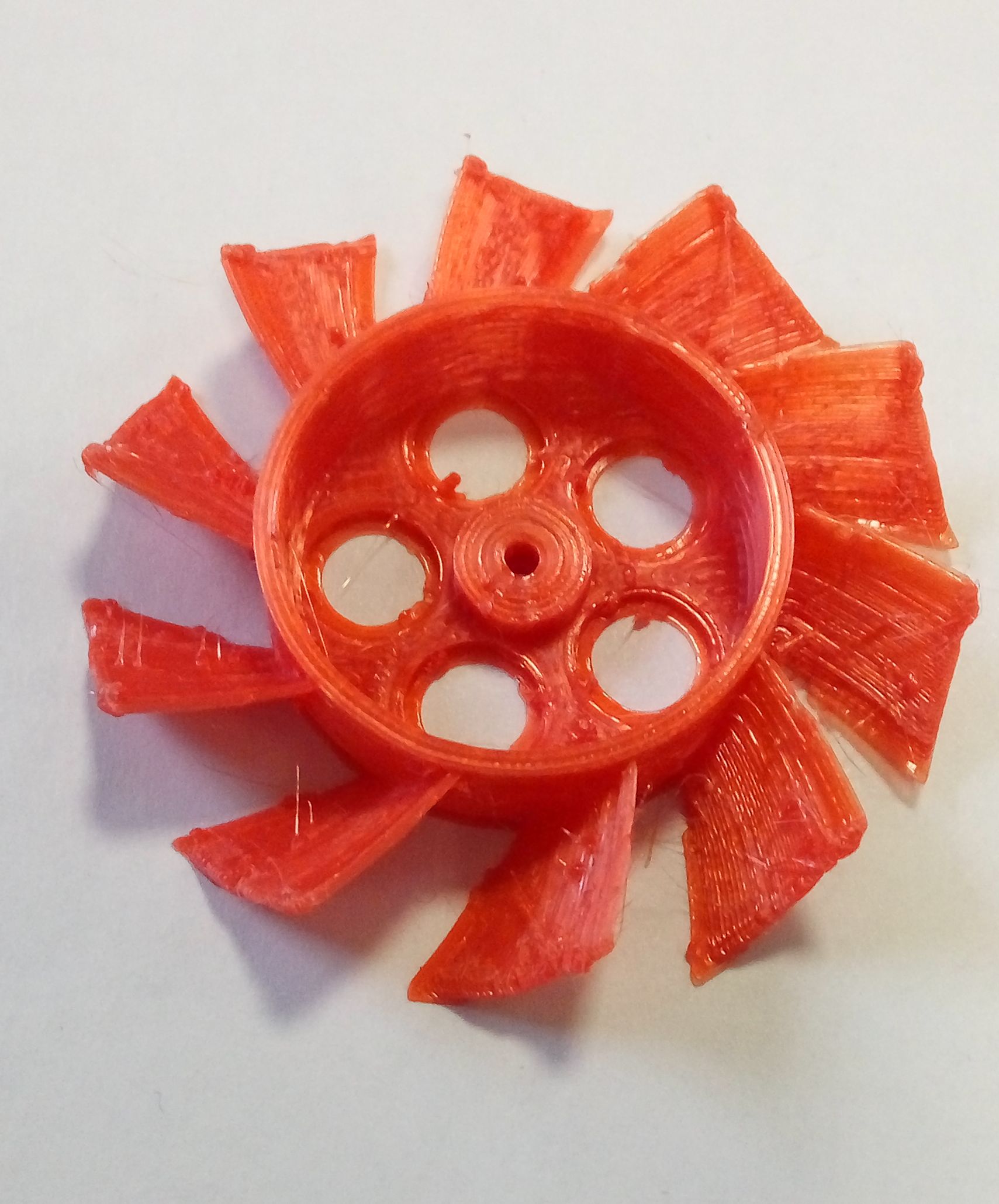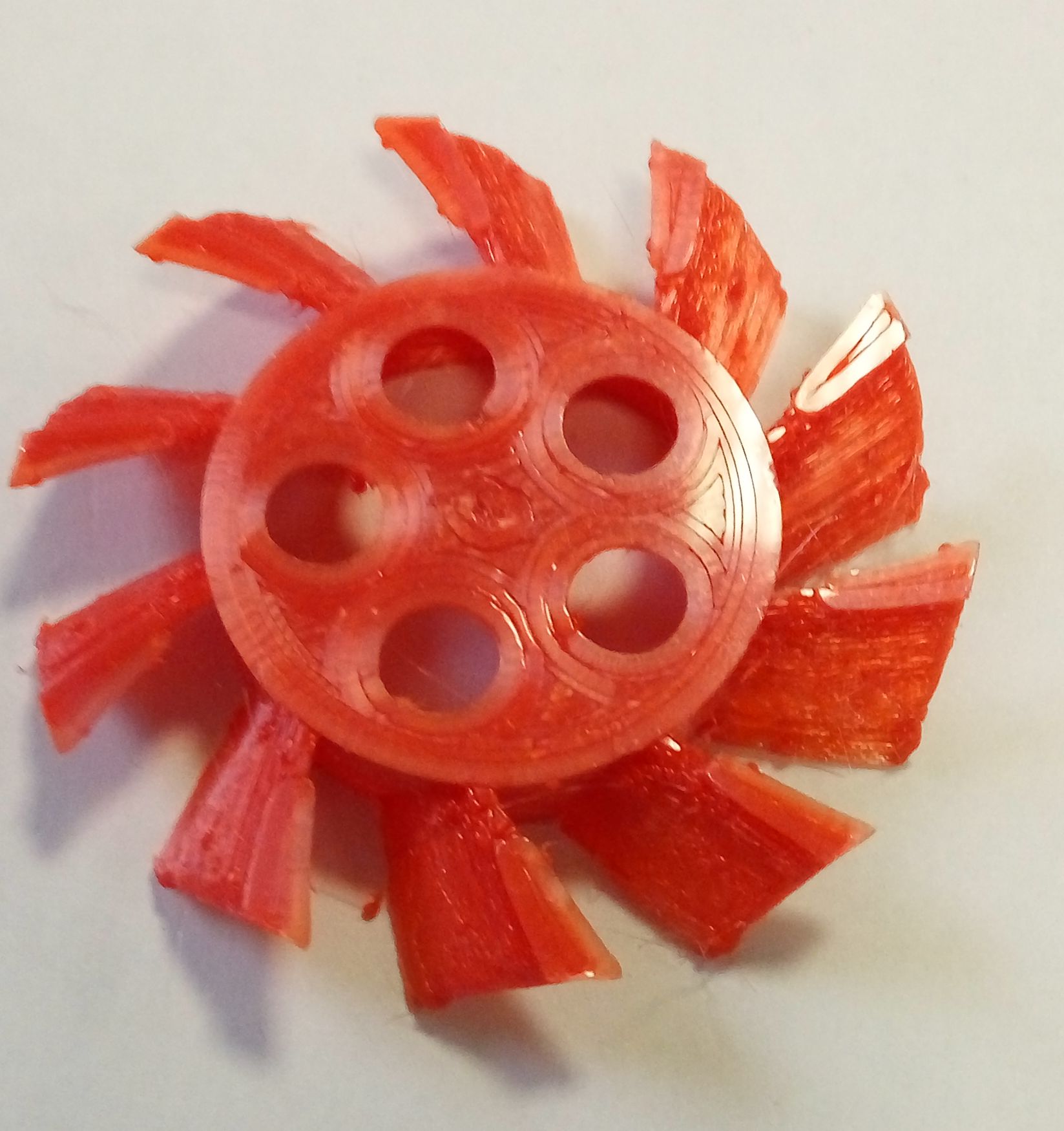 Меня беспокоит, что филамент плохо склеивается послойно, довольно легко можно разорвать слои. А обдув напечатал и поставил тот, что почти круговой. Вентилятор включается со второго слоя на макс. Да, на первом слое включал brim в одну нитку. Да PLA Креозон.