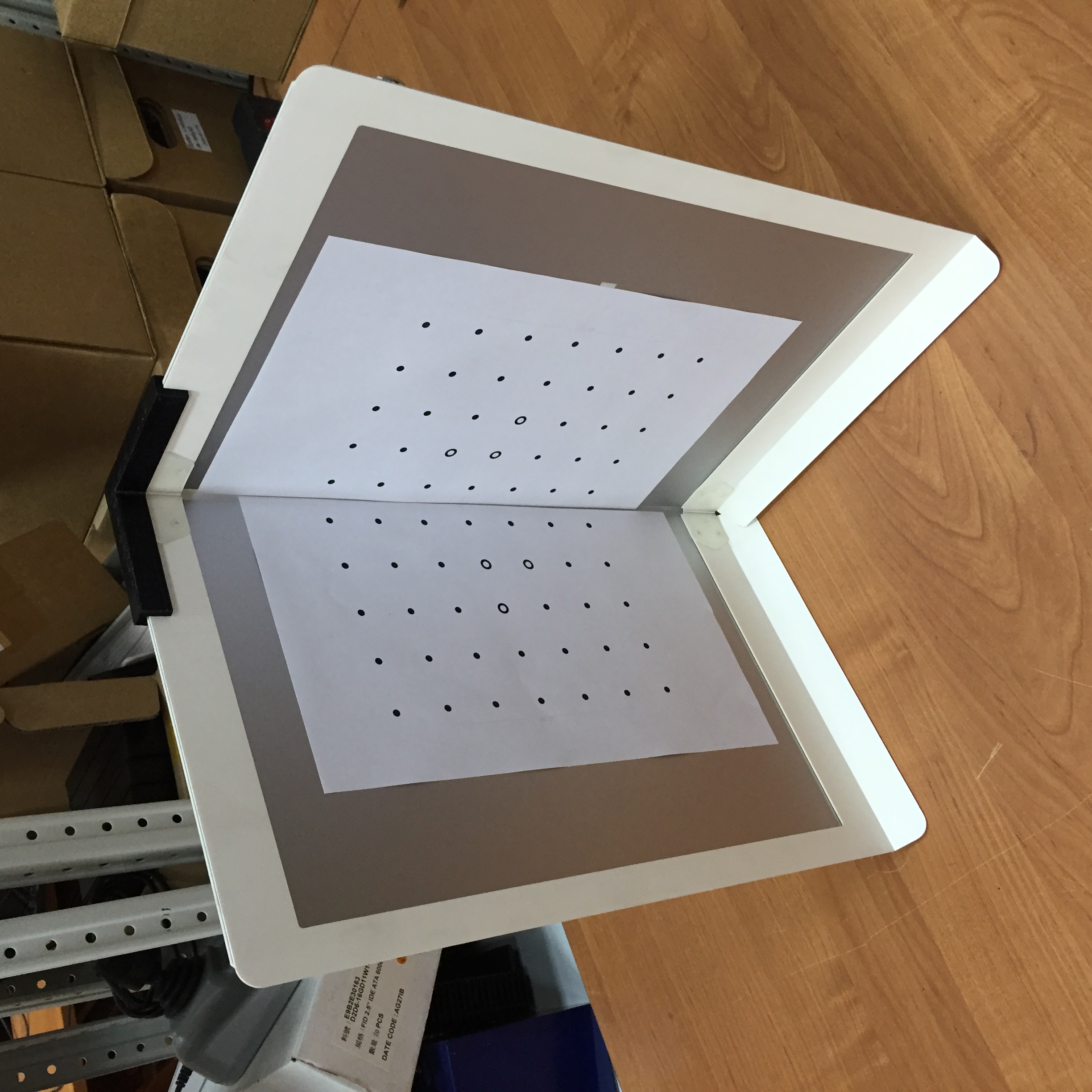 Попробуй совместить стык листов калибровочной панели с вертикальной линией которую проецирует проектор.