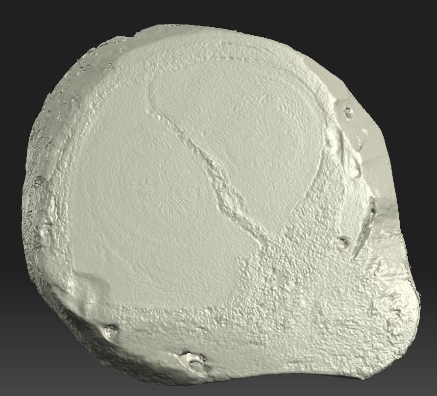 2. Также, для удобства придания формы "загиба" максимально близко к сохранившемуся оригиналу, была отсканирована серьга, и далее использовалась как опорный объект, по которому гнулась модель изделия. Качество, конечно, никудышнее, но для данной задачи достаточное.