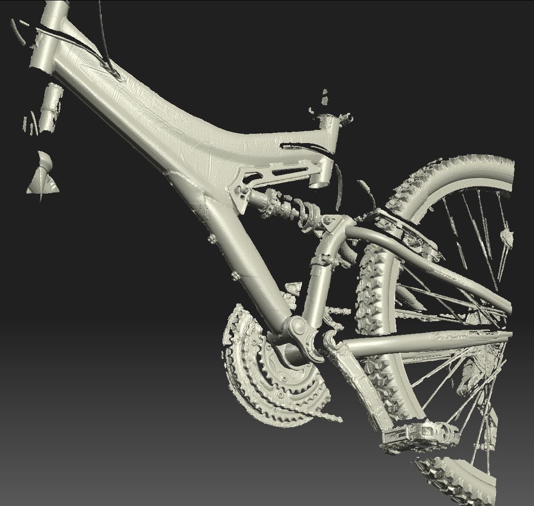 Сначала попробовал на передней вилке: Потом всю раму: Вилку сканировал с охранившейся калибровкой по 30мм таблице. А для рамы использовал свою самую большую калибровочную таблицу на 110мм.