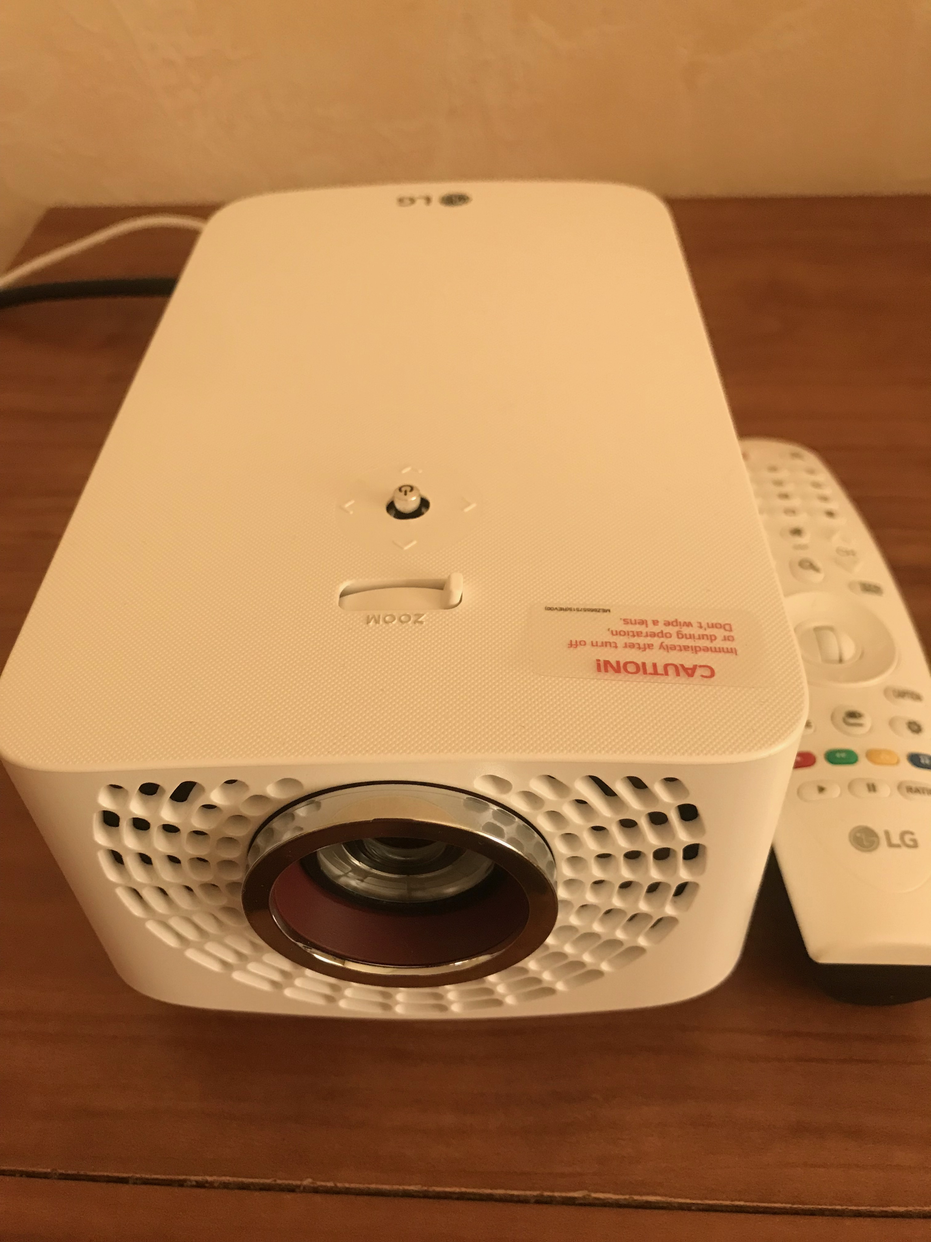 Проектор по размеру в два раза меньше чем мой старый ламповый Acer H6510BD Греется чуть меньше, шумит почти также, но при дневном свете яркость у LG заметно меньше чем у лампового.