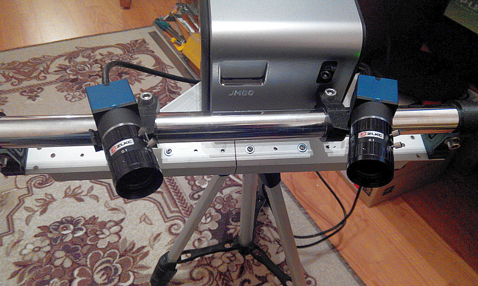 Таблица 50мм, две монохромные камеры Mindvision SUA630M-T, объективы ZLKC 12мм