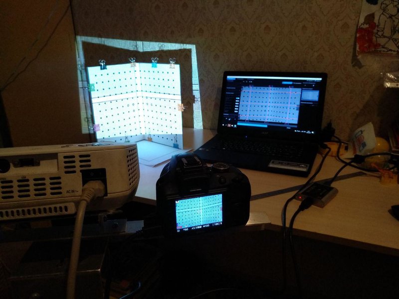 Вчера тестировал свою старую калибровочную таблицу (печать на пленке + стекло), RMS 1,5-1,35 в лучшем случае. Ну это вообще никуда не годится. Пробовал и оптику менять на полнокадровую и углы камеры и зум проектора/оптики и углы самой таблицы (89-91градус) и область захвата таблицы (от полной до минимального количества точек) . При этом калибруются система всегда исправно и при режиме сканирования "скорость" предлагает сделать 40 проекцией (сканируется 17 секунд). При хорошем RMS в режиме быстрого сканирования обычно предлагается 20 проекций.