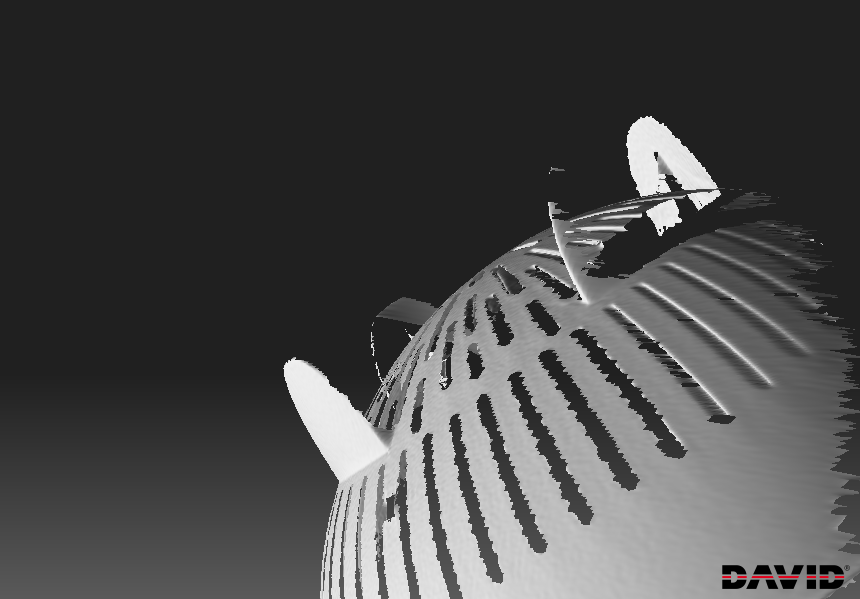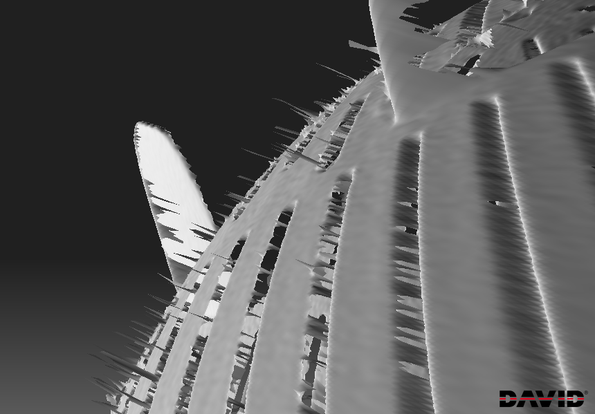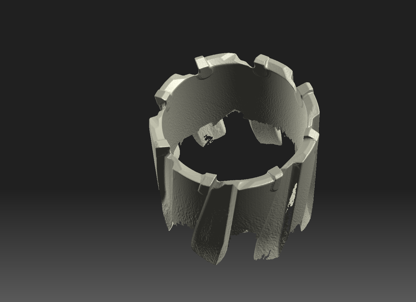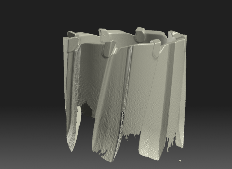 Результат слияния 8 сканов корончатой фрезы. Нужно было сосканировать её зубы, чтобы узнать угол заточки. Шагрень в нижней части - ржавчина. Диаметр фрезы 49мм.