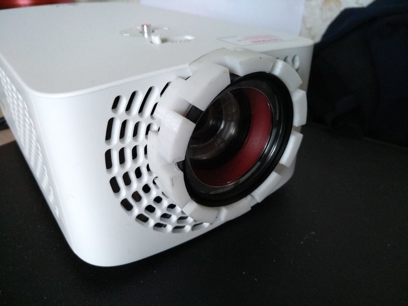 На проектор эту линзу посадил через переходник, напечатанный на 3д принтере. Камеру пришлось двигать вперёд из-за объектива. Но она у меня сейчас там и так постоянно будет стоять на новом кронштейне.