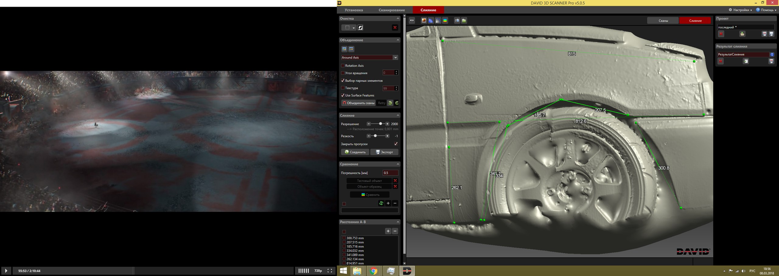 Точность очень примерная и зависит от: от поверхности объекта(спреи матирующие в помощь),от самого сканирования(нужные ракурсы и т.п.),от сведения сканов(в артеке намного лучше сводить кстати). Этот скан делал как пробу:
