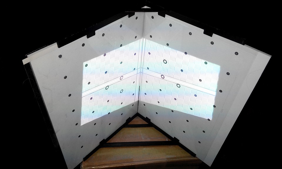 Проблема вторая - объектив 12мм тут весьма "теле" получается... если раньше калибровочные панели ставил на 30см от проектора (иначе старая камера слишком много вокруг захватывала), то тут пришлось отодвинуть панели на 50см, что б хоть как-то метки влезли в экран: