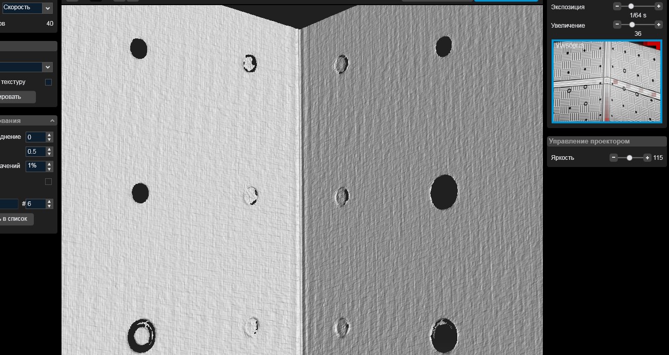 Сканер: проектор Benq mw526e, камера Toupcam ucmos03100kpa, объектив AZURE-1218M3M