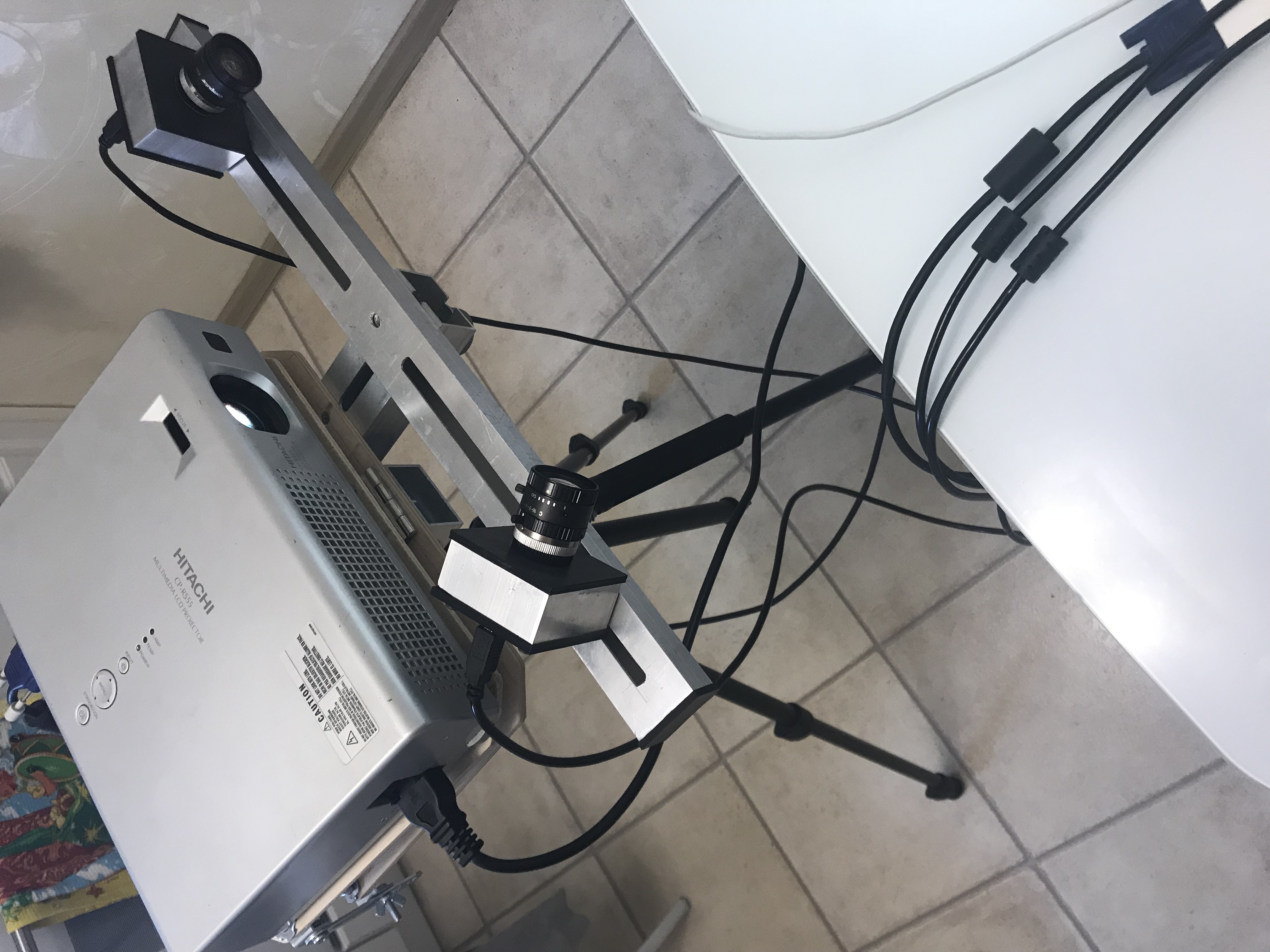 Привет всем. После двухлетнего перерыва решил вернуться. Проектор пока старенький hitachi 800x600 ) но уже лежит ждёт своего часа Acer p1500. Камеры теперь две Logitech C615 с computar 0814mp2. Таблицы наклеены на стекла 6мм. На старой сборке rms не замерял, здесь 0.16-0.26, калибруется без проблем. Полосы на сканах практически победил. Частоту проектора подбирал через CRU. Но и по умолчанию 60гц тоже норм с выдержкой камер 1/60. Заметил что при всех равных условиях один скан получается нормально а второй с полосами, видимо плавают параметры.. также когда extended mode выключен качество поверхности лучше гораздо, видимо усредняется с двух камер. До серьезных сканов и склейки пока не дошли руки. Буду пробовать уже с fullHD проектором. А там глядишь и камеры может поменяю:) как то так.