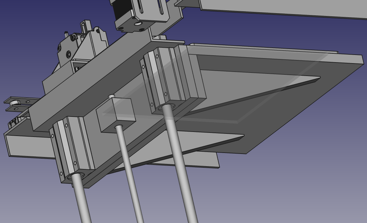 • Система перемещения по Z - валы + винт T8; по X, Y - рельсы