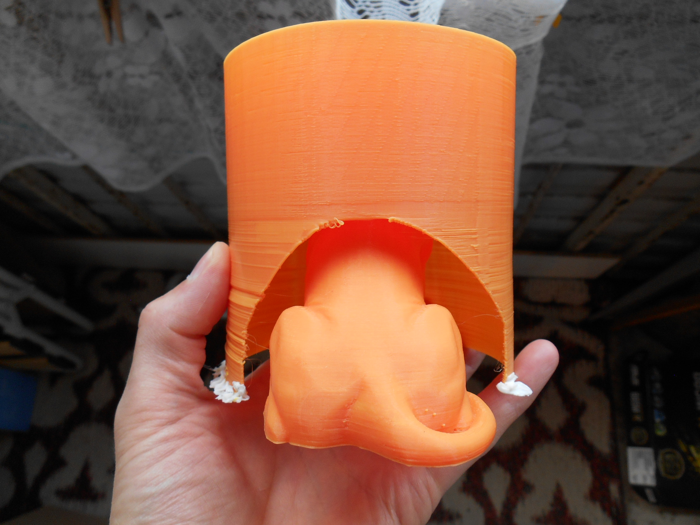 При печати цилиндра один из краев немного деламинировал от стола (судя по всему, соплом цеплял загиб на конце).