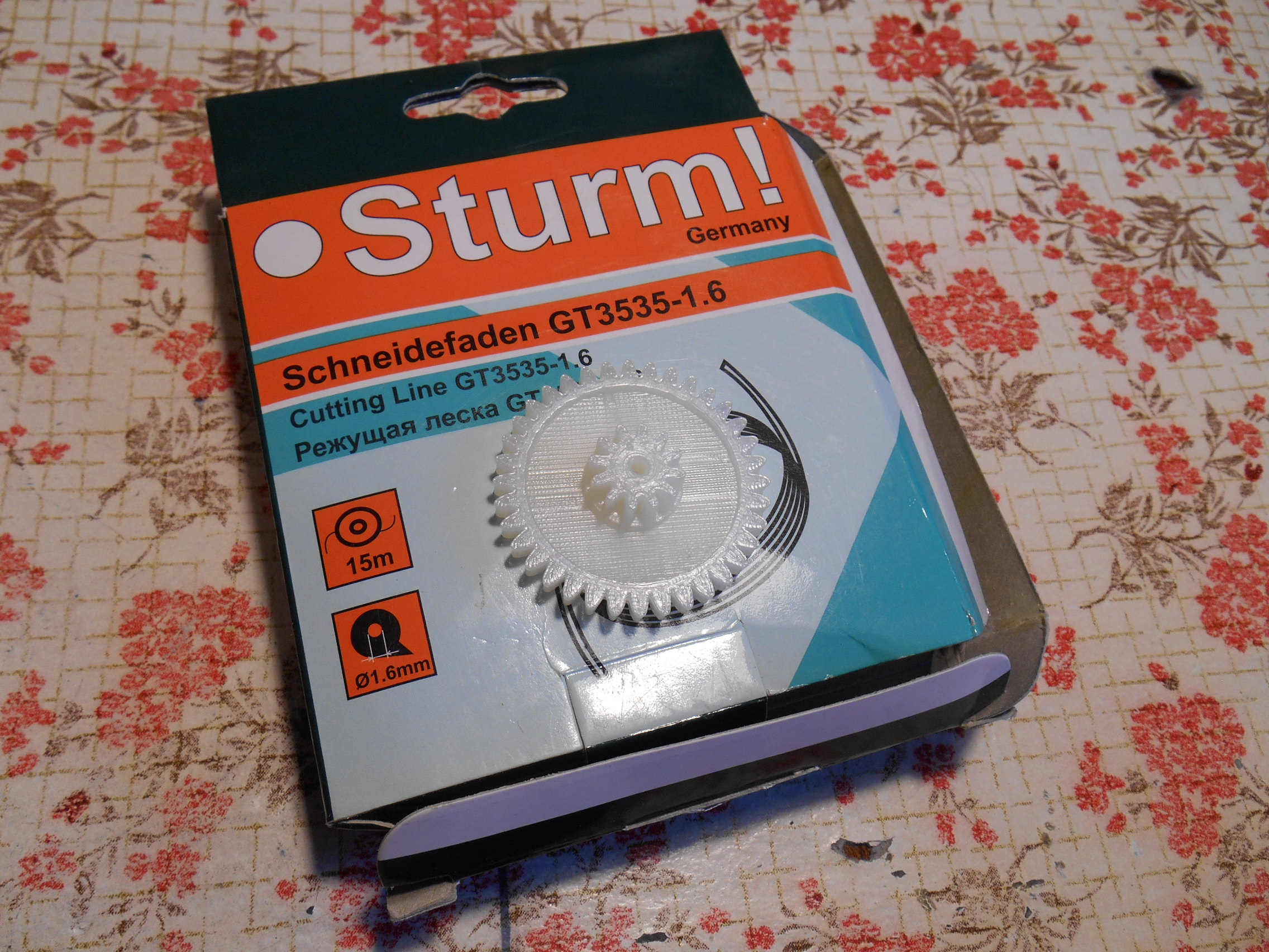 Нейлон (триммерная леска Sturm GT3535-1.6) диаметром 1. 6 мм. Лет 8 пролежала в коробке с триммером. Может, больше...