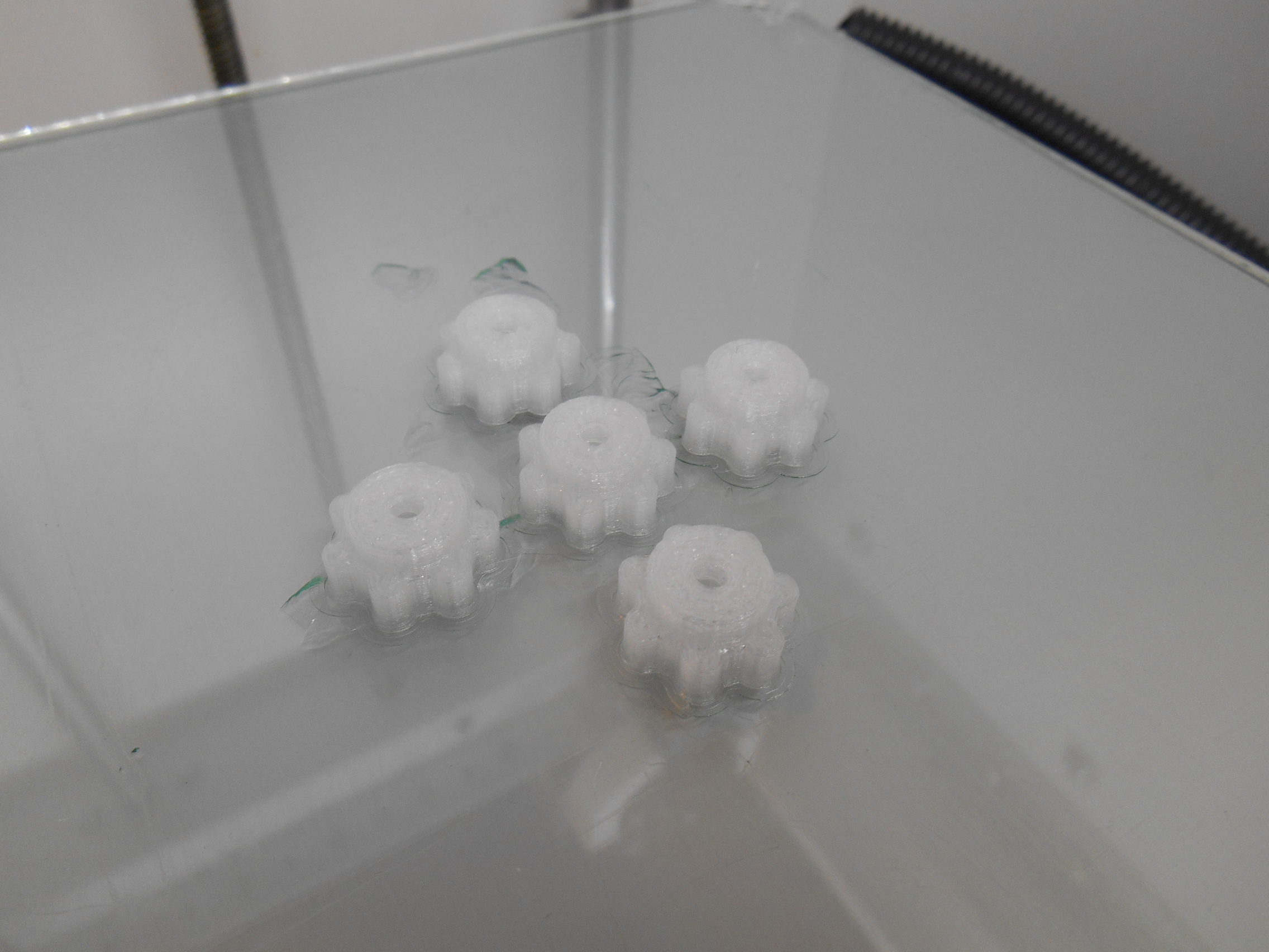 Сверху пластик немного коричневый. Малое центральное отверстие не пропечаталось. Видимо, 260 гр. - многовато...