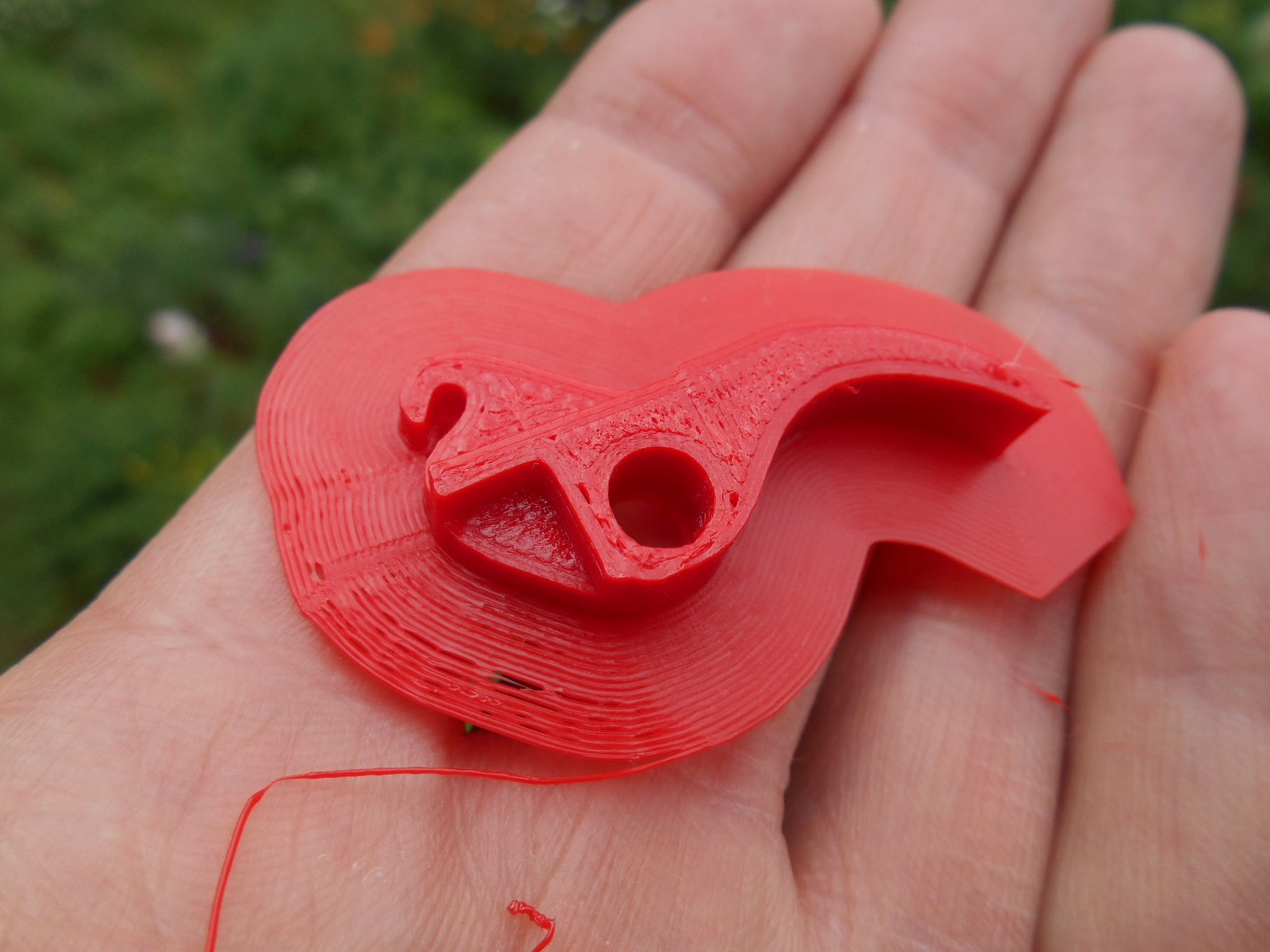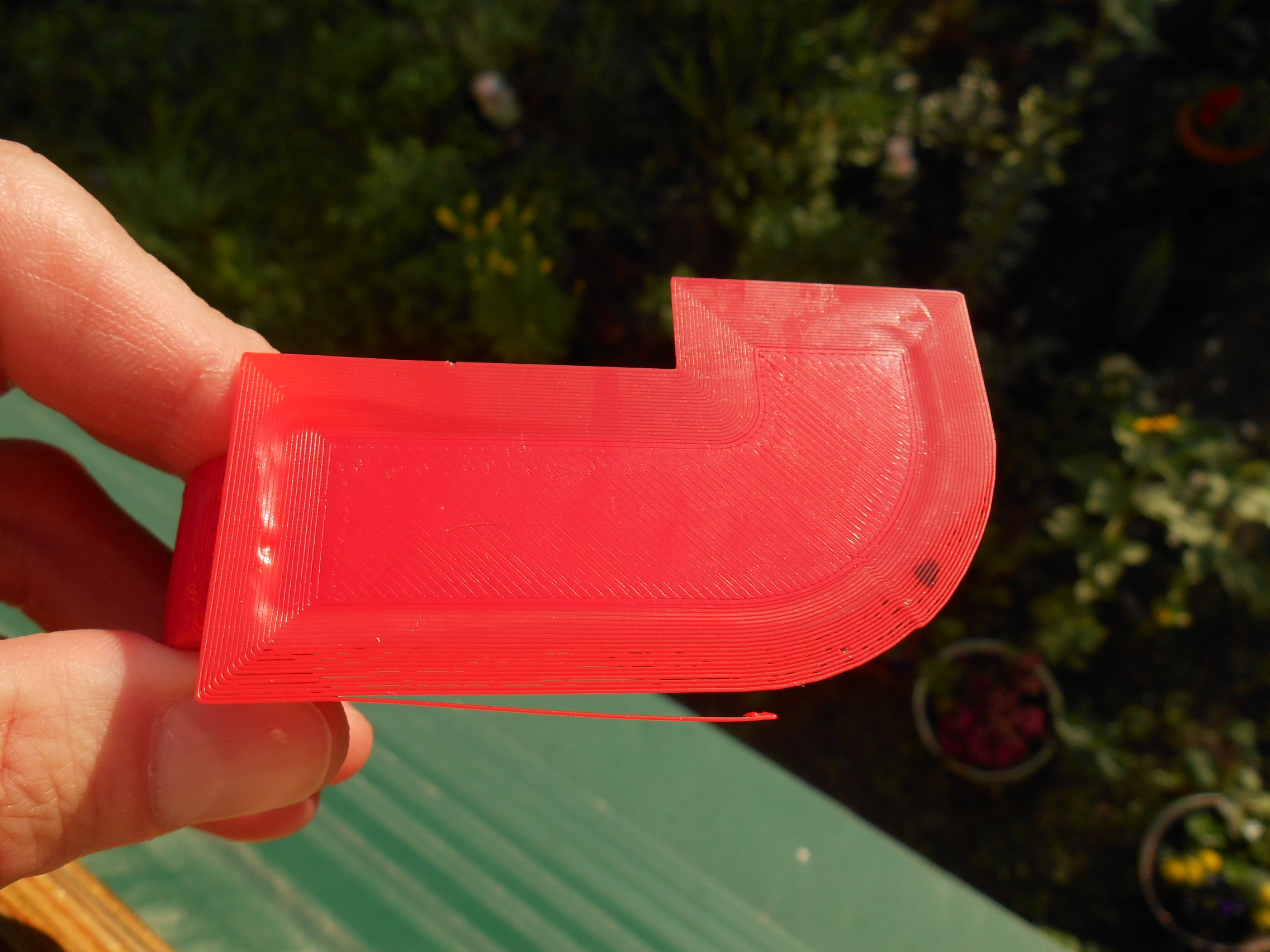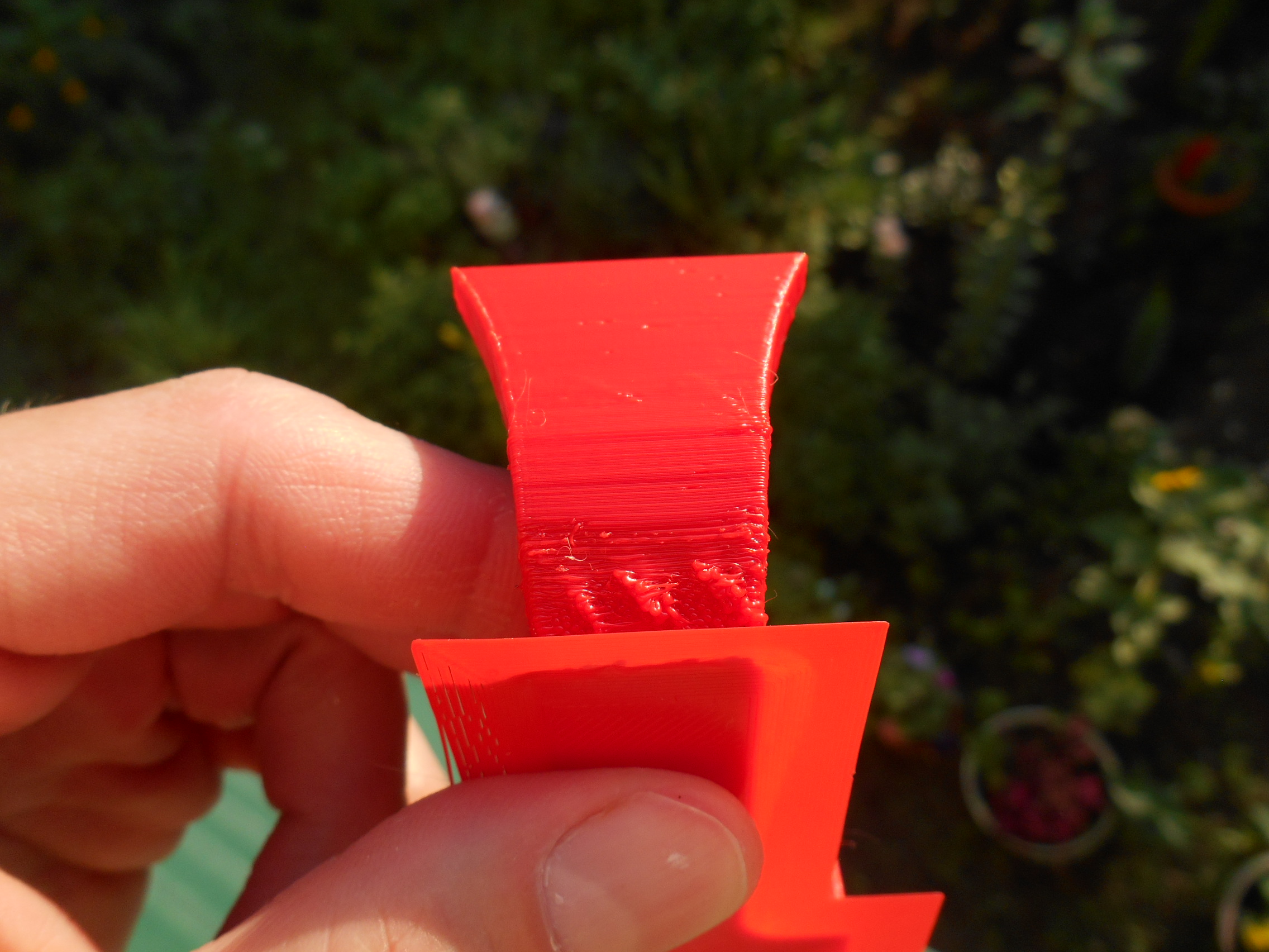 Закругление снизу на сопле с множеством наплывов. Видимо, угол большой. Не хватило обдува (как минимум, сопло не туда дует, а, возможно, скорость обдува надо было увеличить).