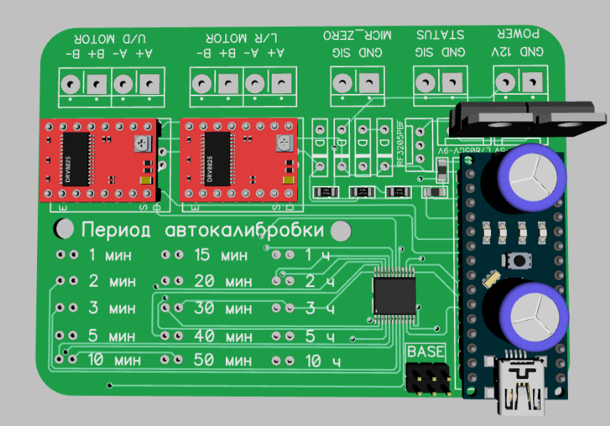 Плата для автоматической калибровки цифрового микрометра в режиме онлайн. пока не доработана и не заказана. Основаня задача откалибровать миркрометр и сообщить об этом плате чтения микрометра. наборами перемычек задается периодичность. пока ожидаю компоненты что бы измерить их, проверить их и сделать заказ.