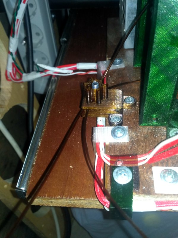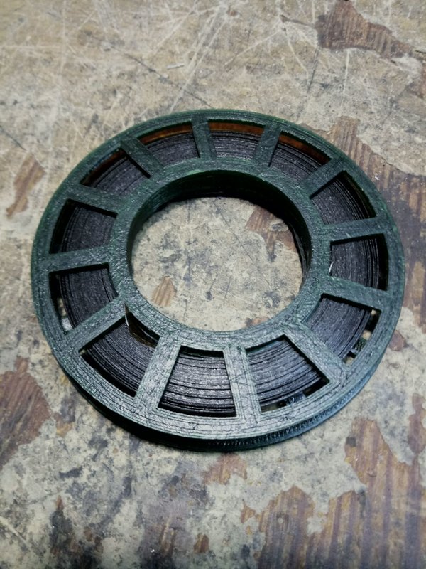 Продолжаю. Станок мне очень понравился простотой контрукции и тем, что состоит из множества отдельных частей, которые в случае неоходимости легче менять чем крупные узлы. Например у меня треснуло тело бобины (наверное межслоевая адгезия АБС пластика не справилась с нагрузкой) , распечатал тело из самопального ПЭТ, теперь такого не должно случиться.