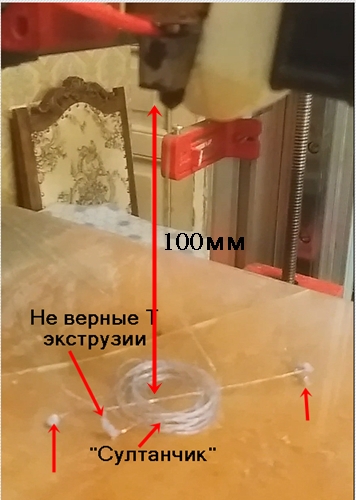 Стол устанавливается на высоту от сопла 100- 120 мм это нужно для того чтоб получить правильную массу нити 0,4мм из сопла 3д бота.