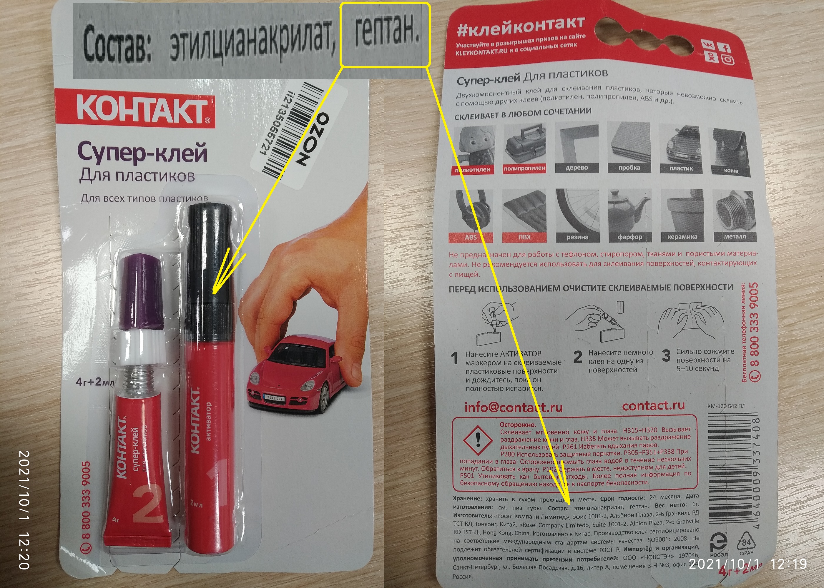 Купили на пробу у нас на производстве такой супер-клей с..... гептаном.