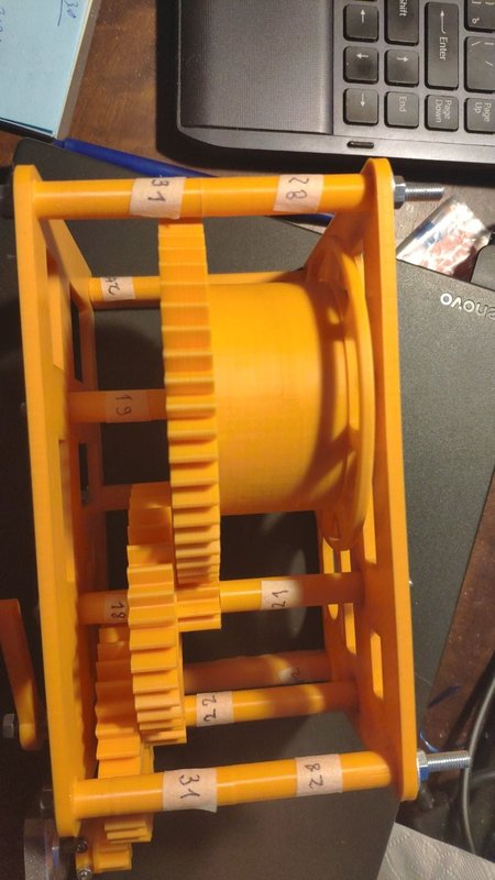 • Маленькая втулка около барабана поставил 17 а около первой (от двигателя) двойной шестерёнке поставил 20 (возможно нужно было наоборот).