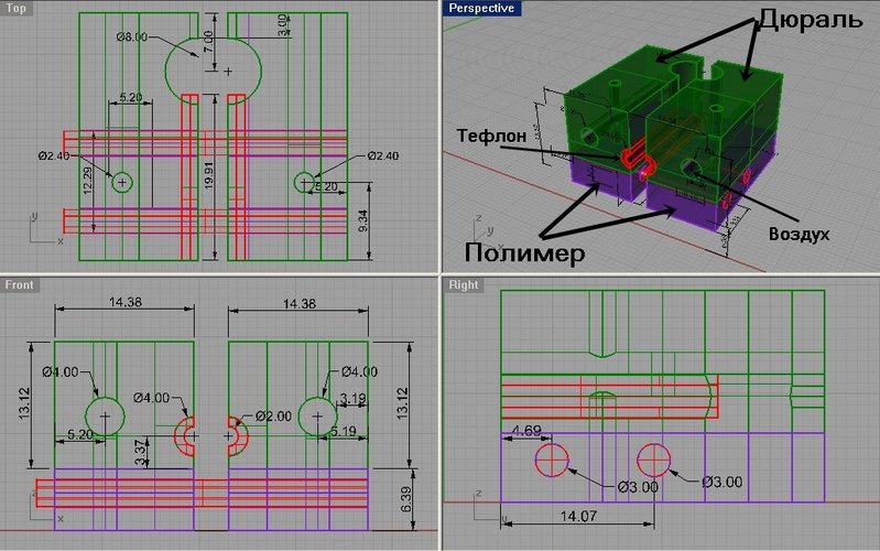 С Уважаемыми бетта тестерами придумали более народный вариант дюралевого кубика, нижняя часть которая требует вертикально-сверлийный станок превращена в деталь для печати, верхняя зеленая часть которую изготовили можно сказать на табуретке дрелью и тисками по прежнему из дюрали