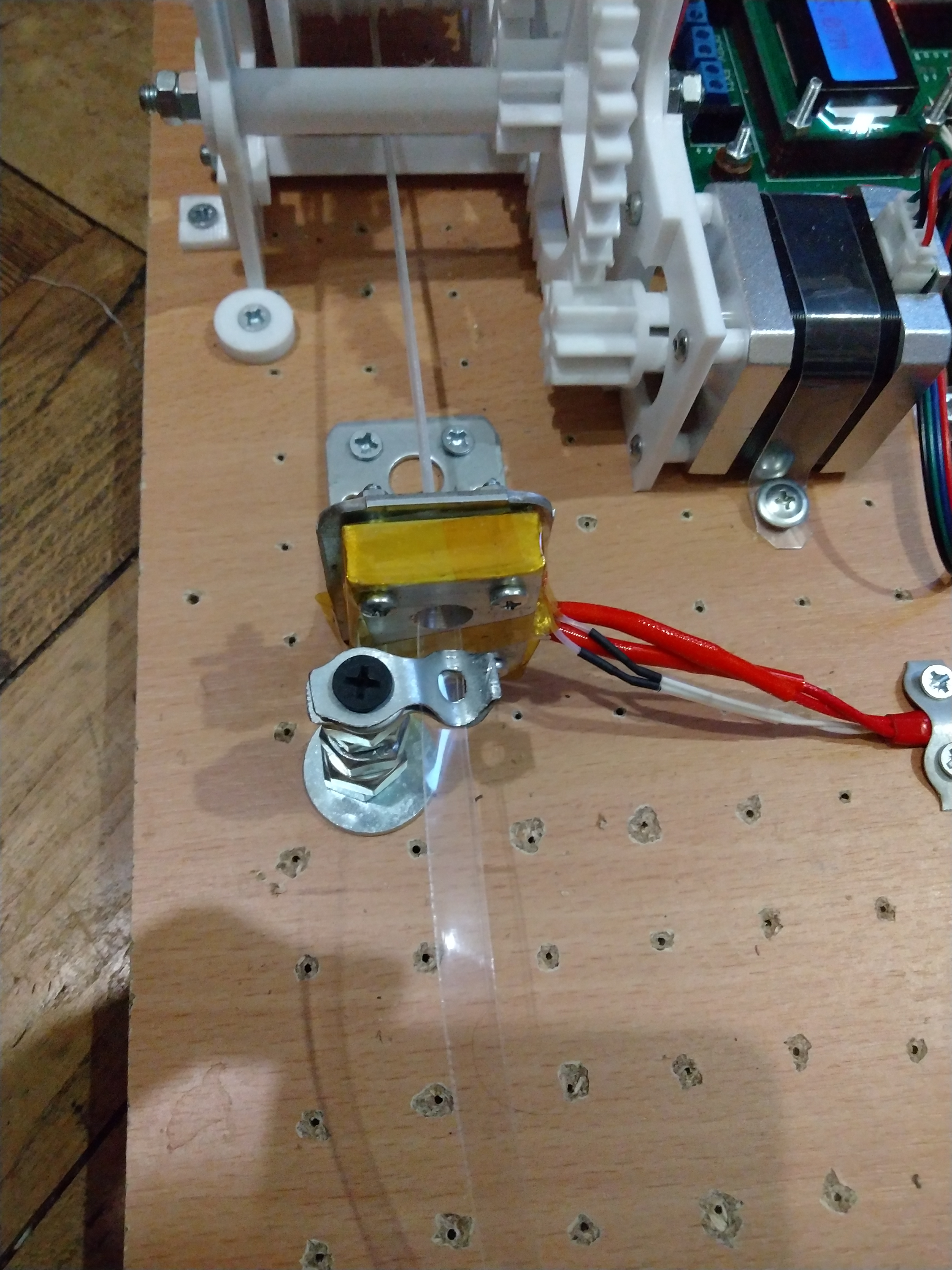 Можно так же тупо порвать все связи степ дир на плате рампса и тупо перевести проводами степ дир Е0 на все остальные посадочные места драйверов. 1 махом запускаем все 5 механик на волочение. 6 заходов и получу 420м филамента, пока теоретически:)