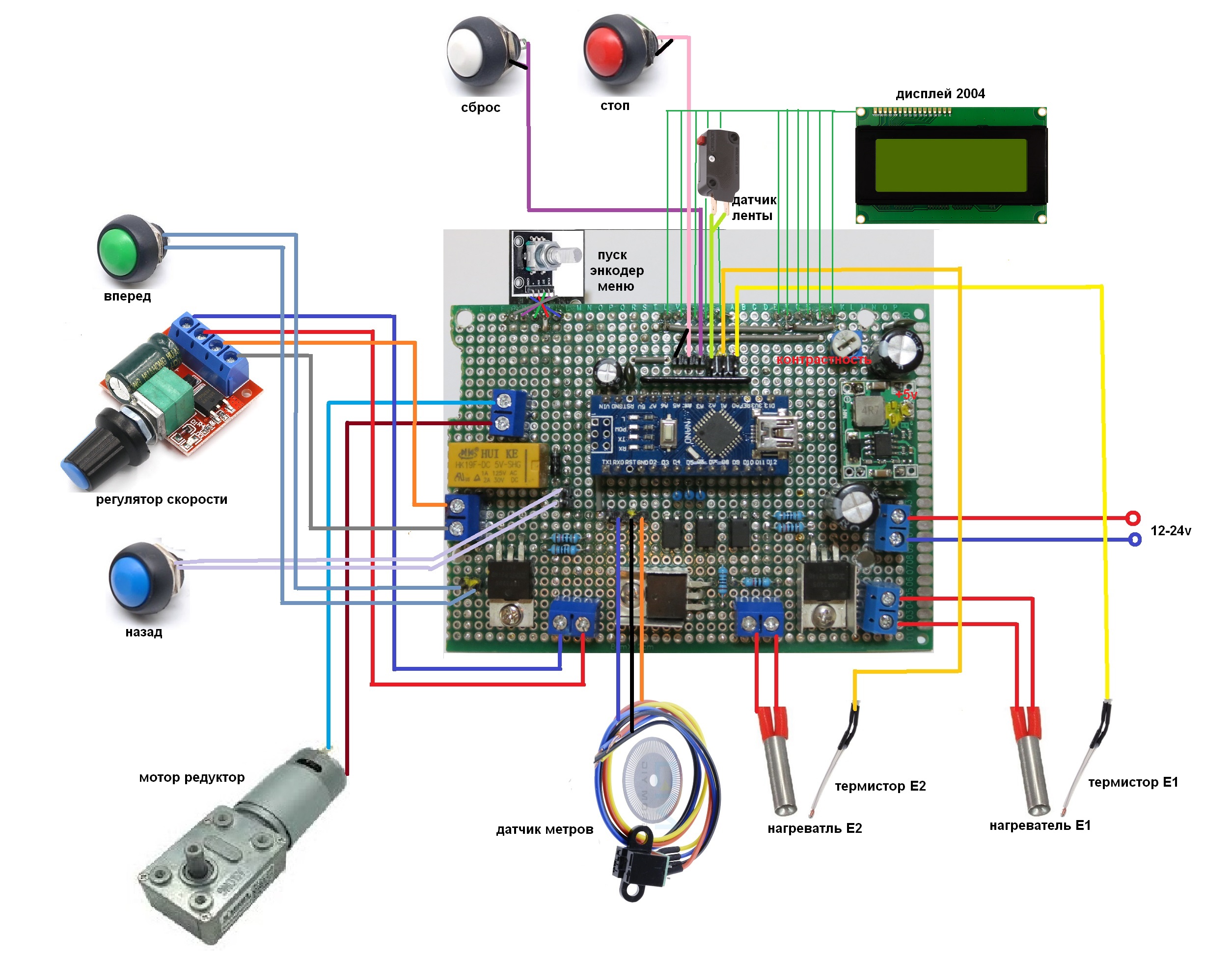 2. нагреватели 40W 12вольт (при питании от 24в использовать нагреватели на 24 вольта).