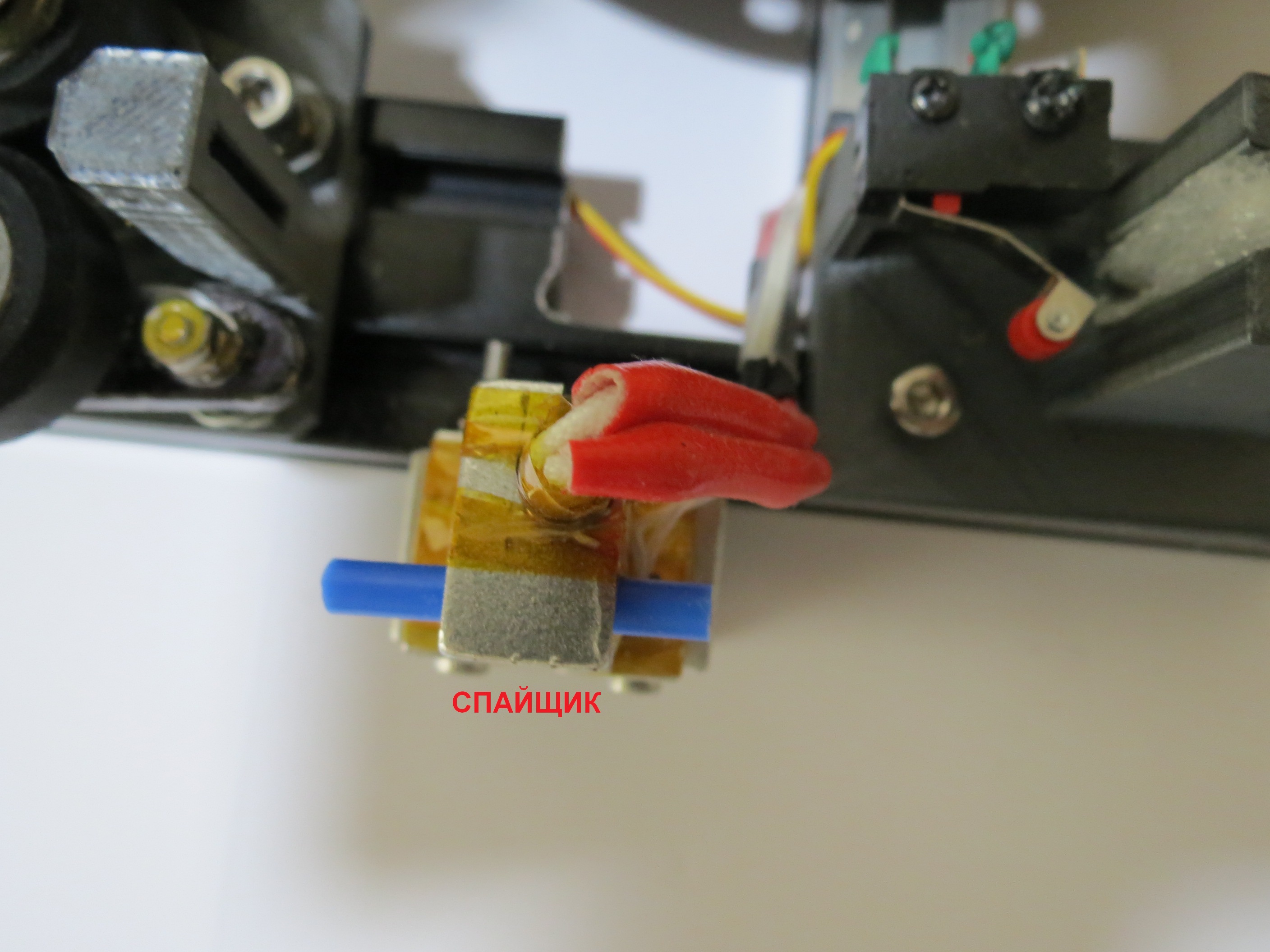 Прижимной рычаг приемной катушки служит для предотвращения разматывания филамента. Прижим за счет действия пружины:
