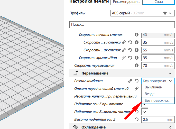 В общих чертах смысл такой. В последних версиях Cura есть параметр "Режим комбинга". По умолчанию он скрыт. Но подвох в том, что скрыт в пониманеии разработчиков Cura - не означает неактивен. Чтобы его деактивировать, его нужно отобразить и поставить галку "Выключен" или "Без поверхности". При выборе значения данного параметра "Везде" печатающая головка будет двигаться в пределах внутренней части модели во время перемещения от одной точки к другой. Пластик при этом не втягивается. Если же данный параметр отключен ("Выключен" или "Без поверхности") – 3D-принтер будет выбирать кратчайший путь для перемещения экструдера, всегда втягивая филамент во время этого. При печати всей модели или при печати поверхностей соответственно. Ну и с параметром дистанции обхода можно поэкспериментировать - что обходить, а что нет. Как-то так.