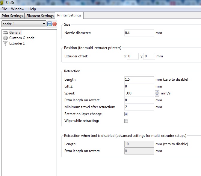 PS. Extrusion multiplier тоже надо поставить в 1. При печати проверить FLOW чтобы стоял 100%.