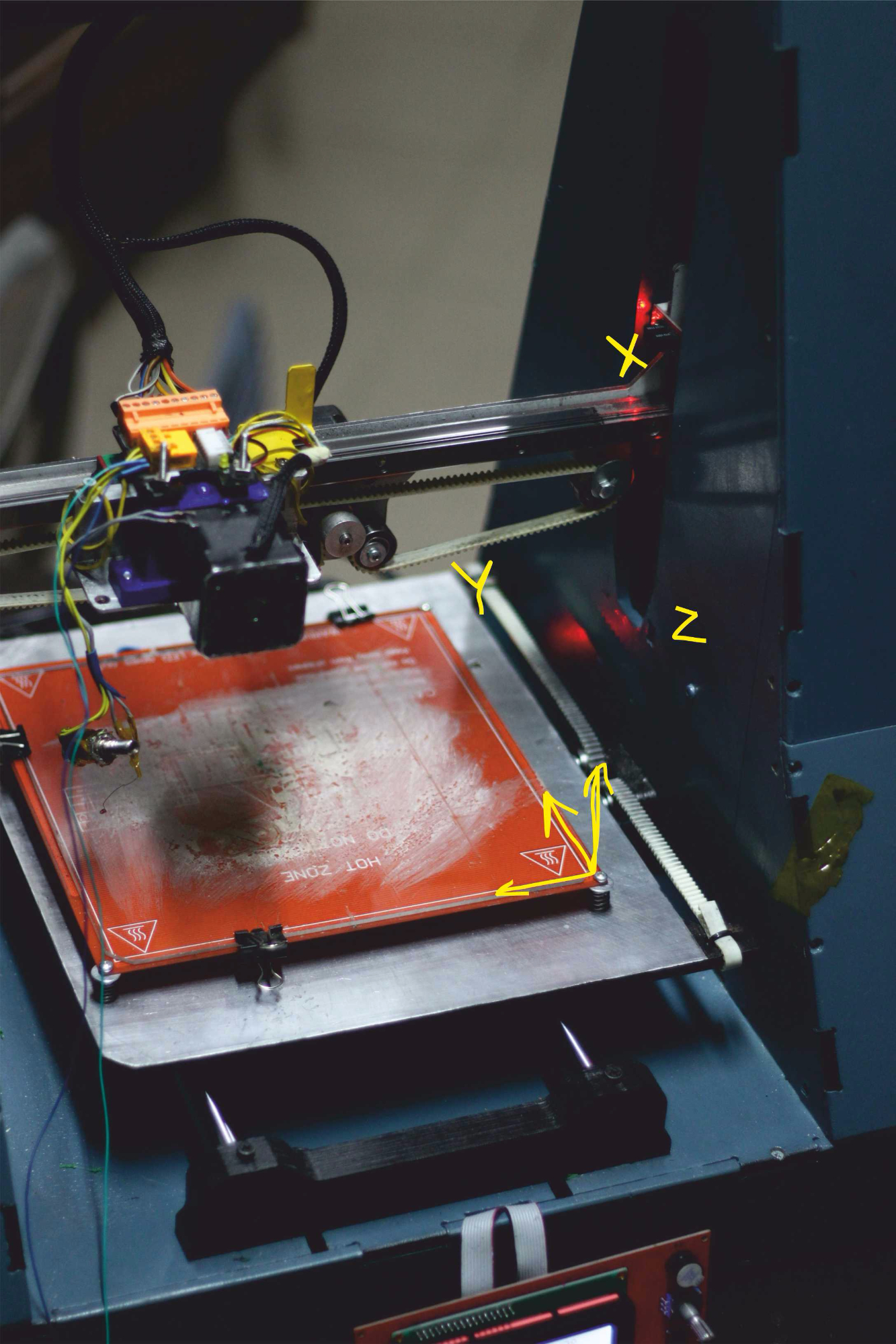 немножко нестандартный принтер,база у него в правом нижнем углу,на фото видно