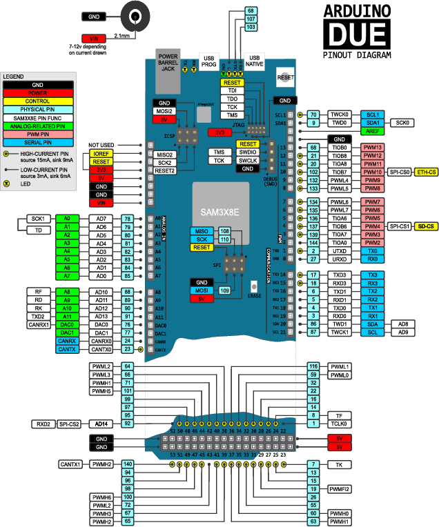 Приветствую! Пришла плата DUE и решил попробовать IDE - скачал прошивку Marlin 2.0 любезно предоставленную Lenivo под SPrint, загрузил в IDE Arduino 1.8.8. Установил библиотеку для DUE и попытался компилировать - сразу куча ошибок... Для меня было откровением, что без подсоединенной платой ничего компилироваться не будет. :? Подсоединил плату и процесс пошел - была один раз ошибка по поводу отсутствия библиотеки U8dlib. Попробовал залить в DUE - все нормально. Решил поправить скетч под свой набор для SPrint. Затык начался, когда нужно было прописать пины под SPI для ТМС2130. Например, для сигнала CS (Х,У,Z,E0,E1) это соответственно D63,D40,D42,D65,D66 , а вот где их найти на плате? И на какой? Я так понимаю, что на RAMPS надо искать, но они ведь где то в софте должны быть прописаны в каком то из ххххх.h? Начал искать, но без результата - их там столько... Наведите пожалуйста на путь истинный :)
