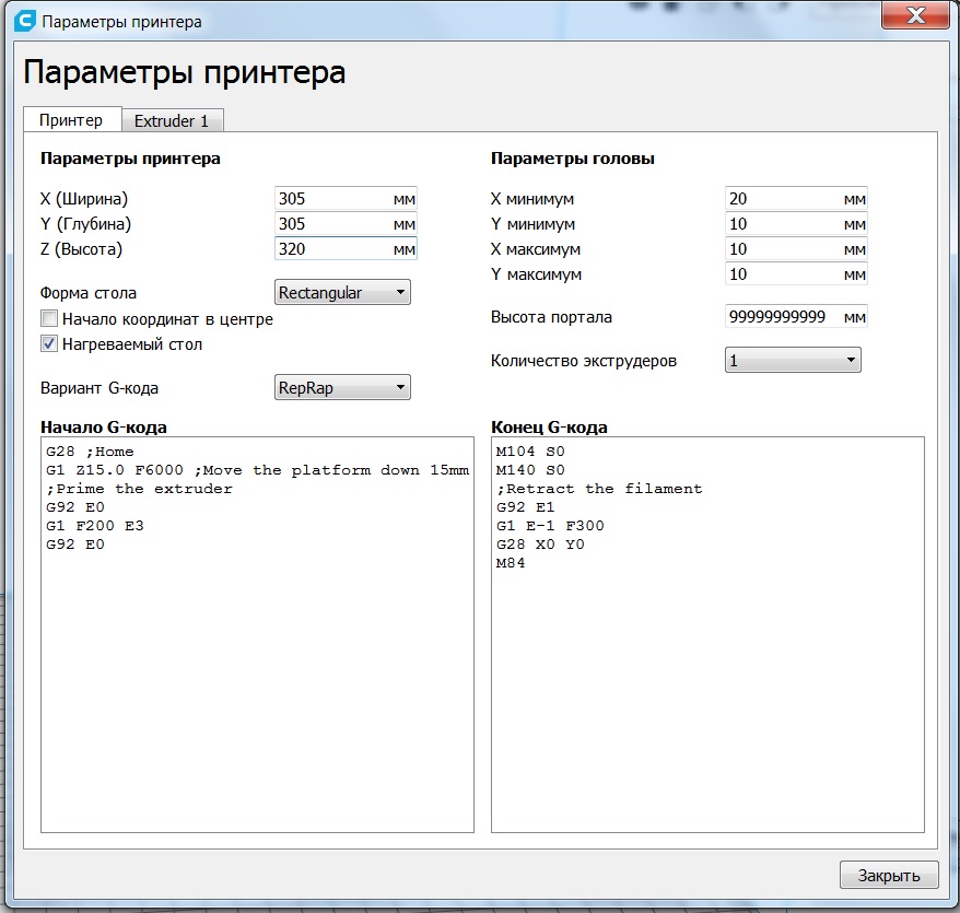 Профиль принтера в куре мне пришлось настраивать самому, т.к. в самой программе нет моего устройства и предустановленные параметры отсутствуют...Но настройки в общем-то те же, за исключением размеров по осям...